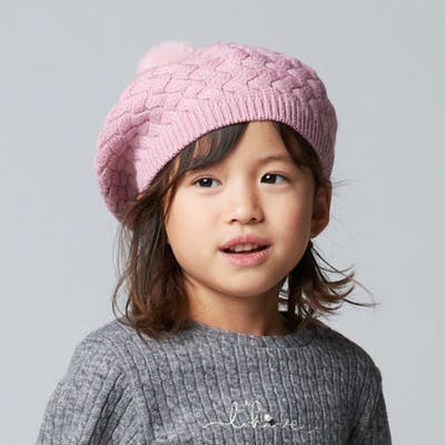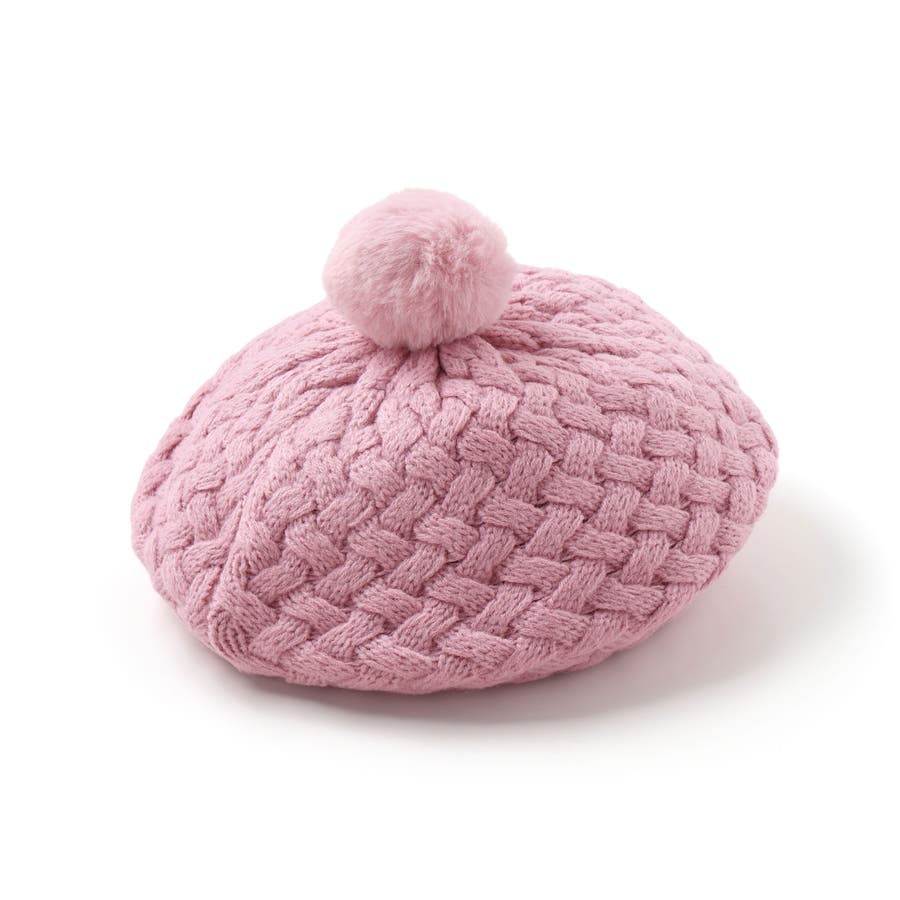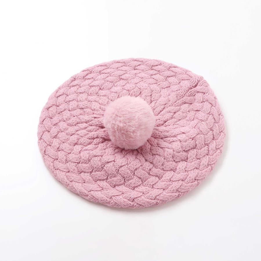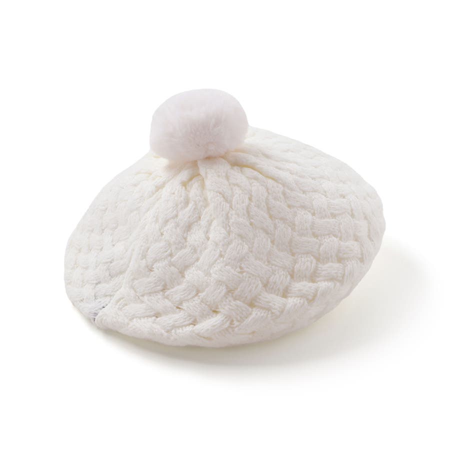 かわいいファーのポンポン付きニットベレー帽。