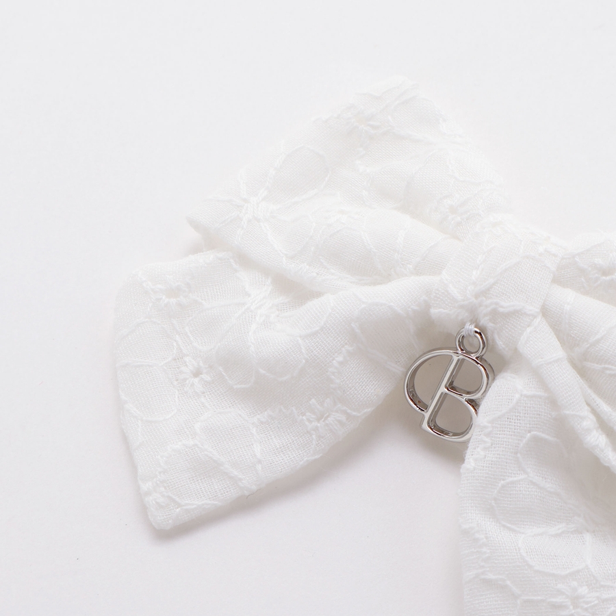ナチュラルな雰囲気のローンレースを大きなリボンモチーフに。