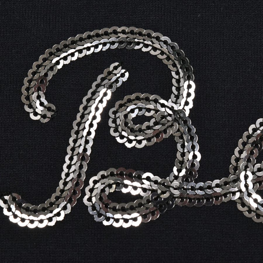 流れる様なフォルムで表現されたロゴとスパンコールの輝きが華やかなデザイン。