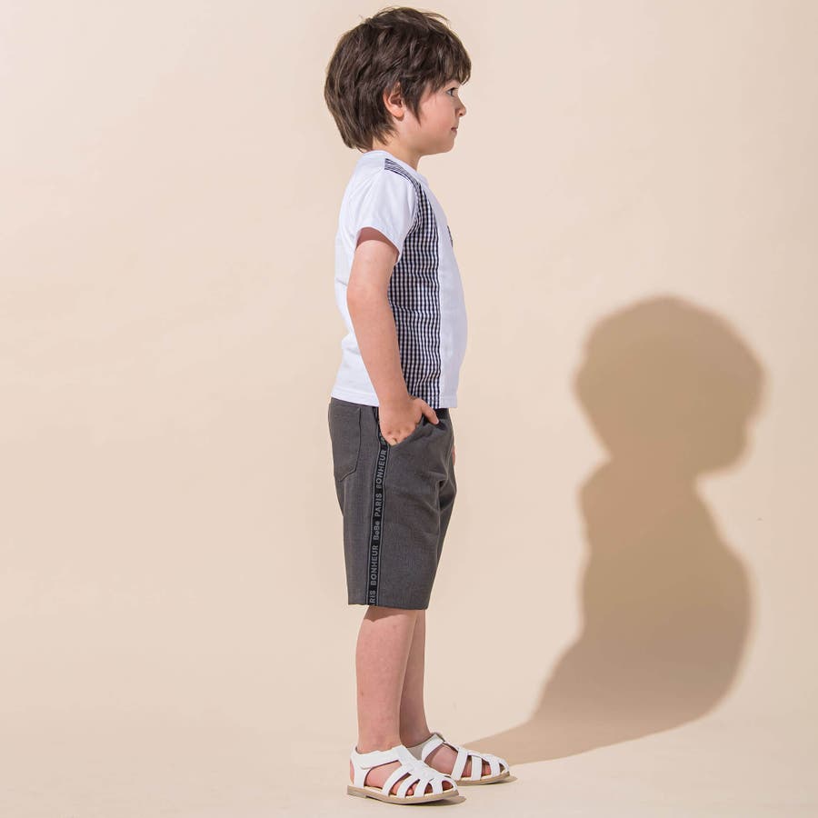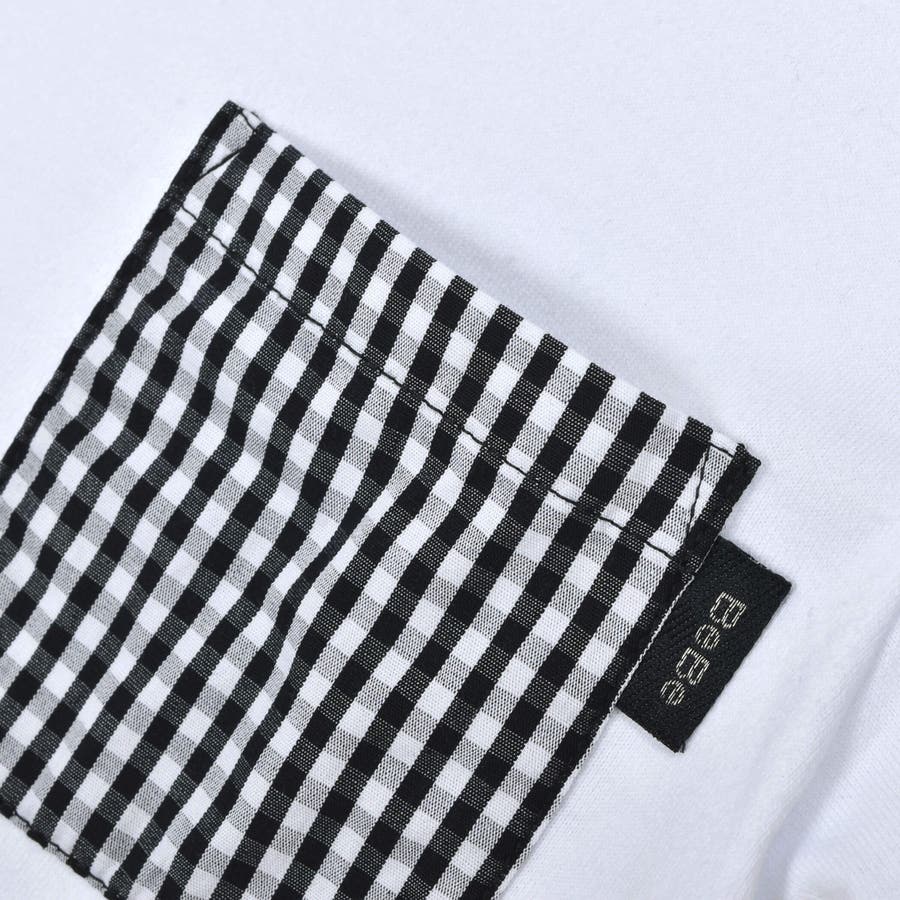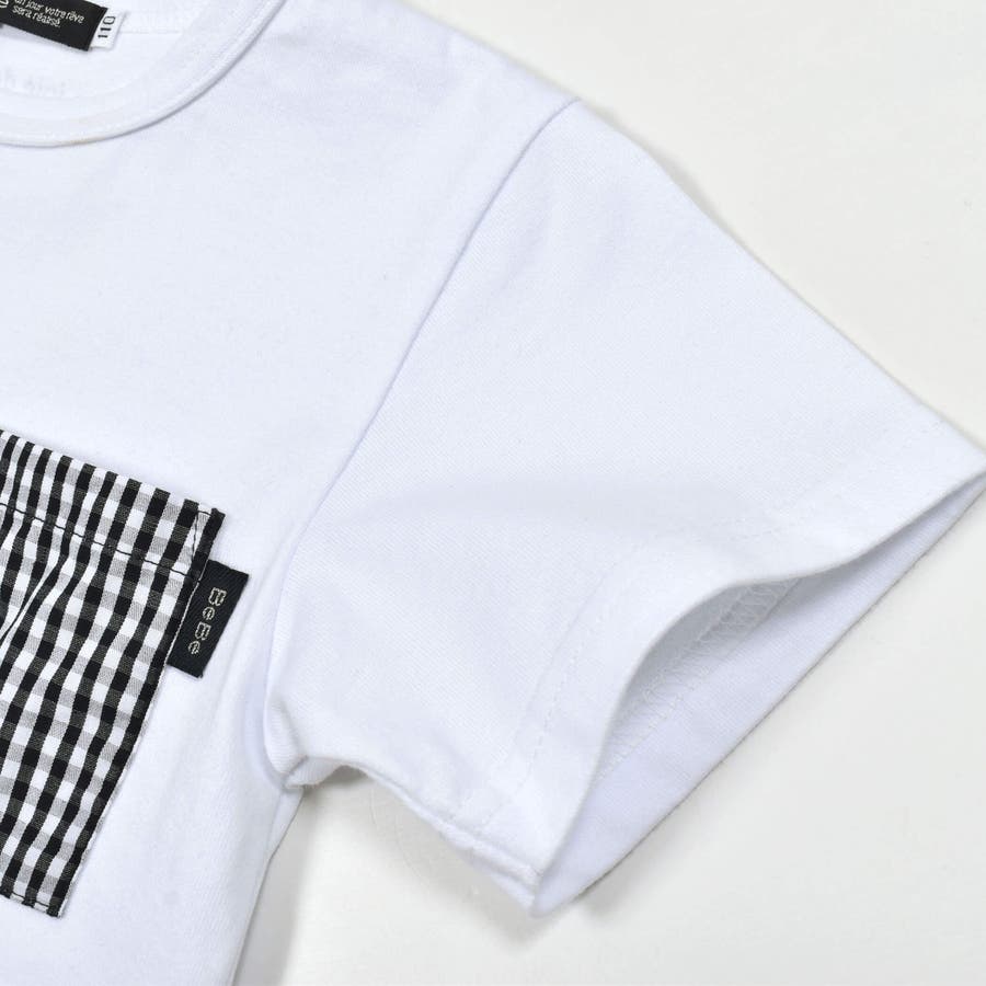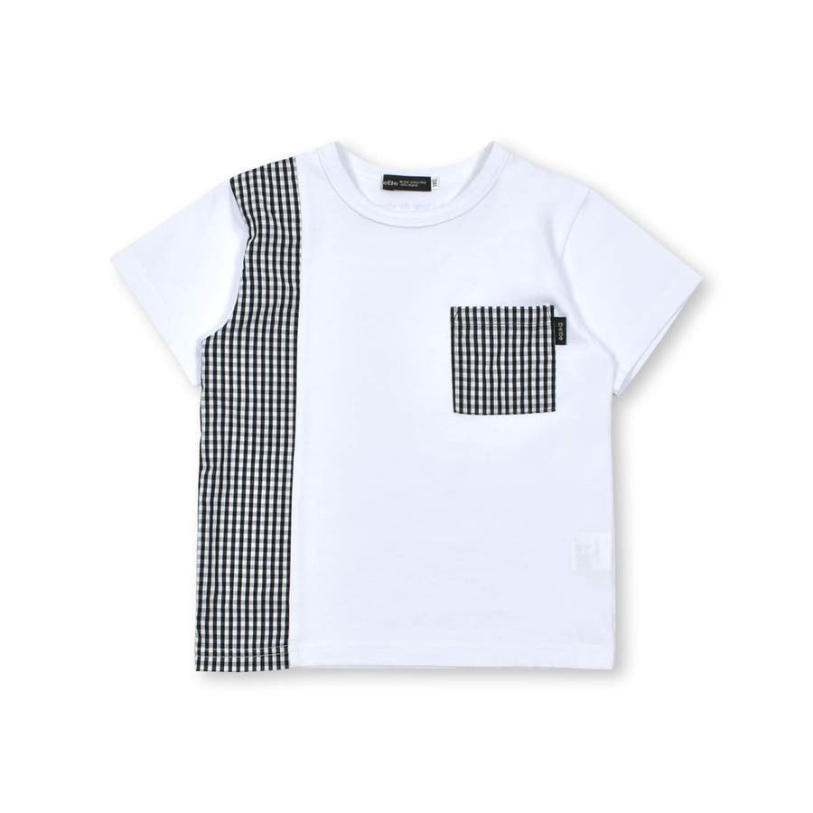 【ホワイト】ギンガムチェックアシメ切り替えポケット半袖Tシャツ(90~150cm)
