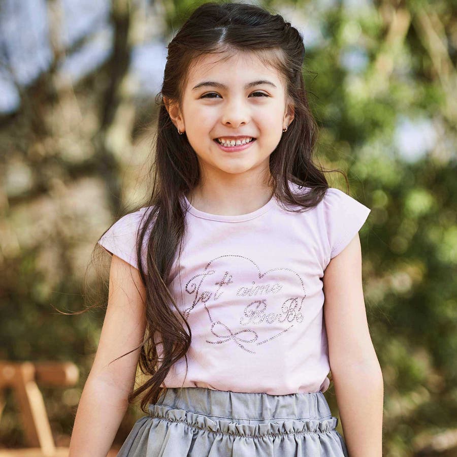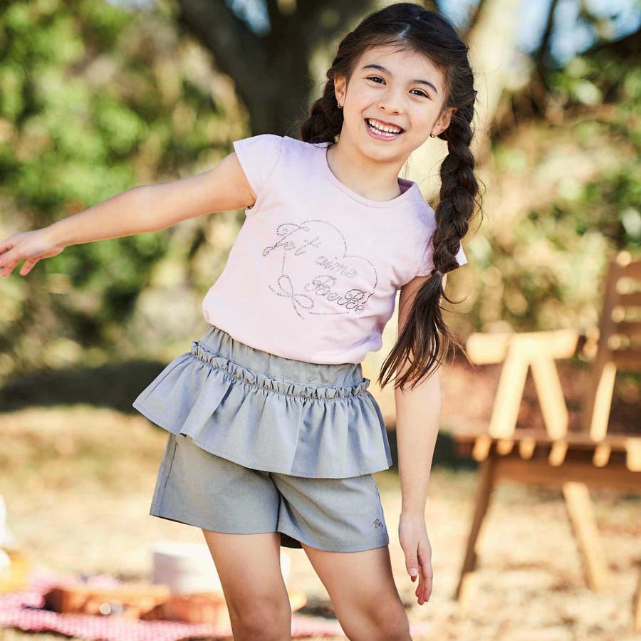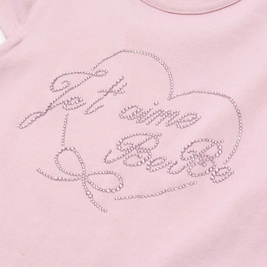 BeBeらしい品の良さはTシャツのカラーとラインストーンのカラーを同系色でまとめているから。