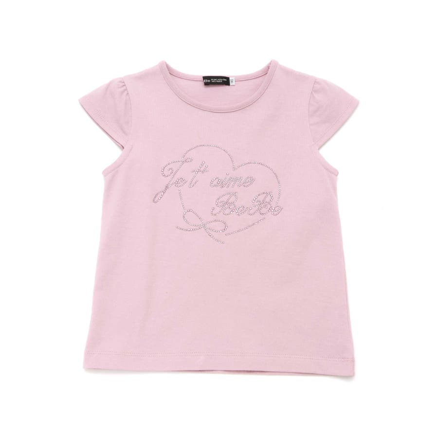 ラインストーンハートロゴ天竺キャップスリーブTシャツ(100~160cm)