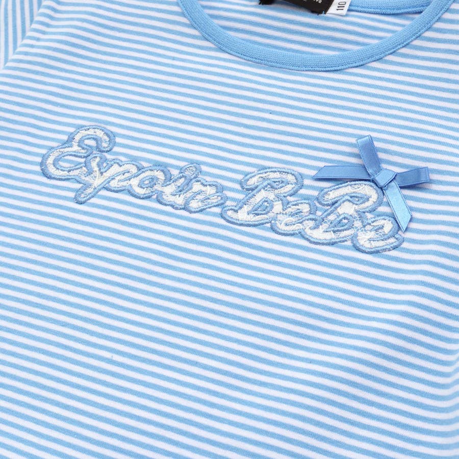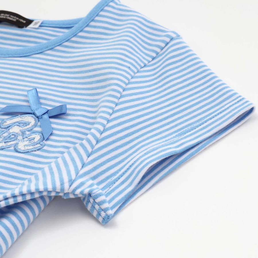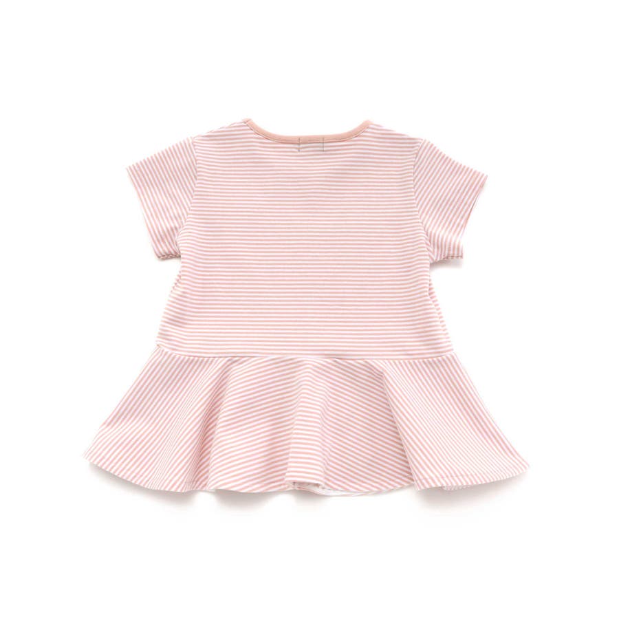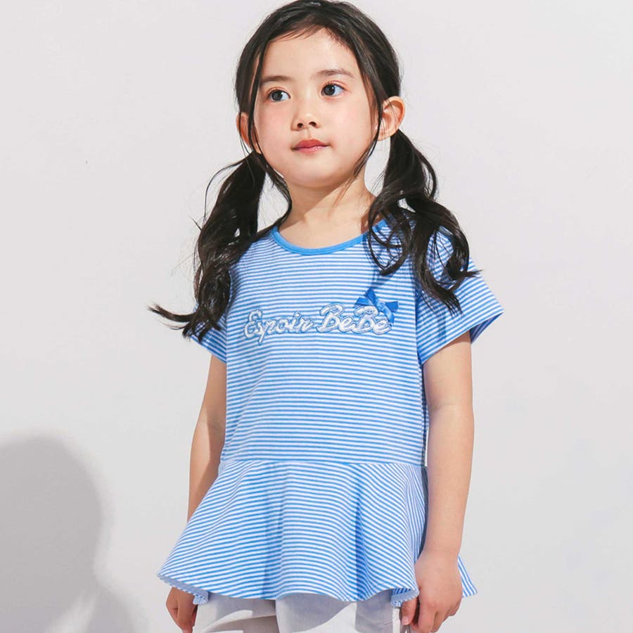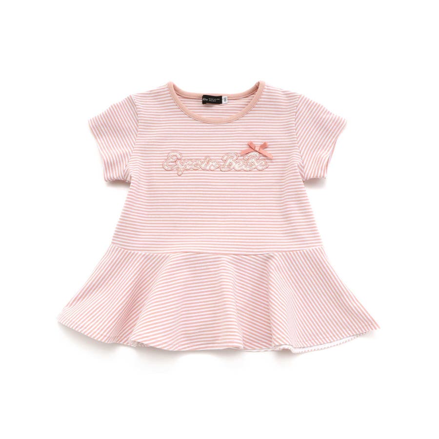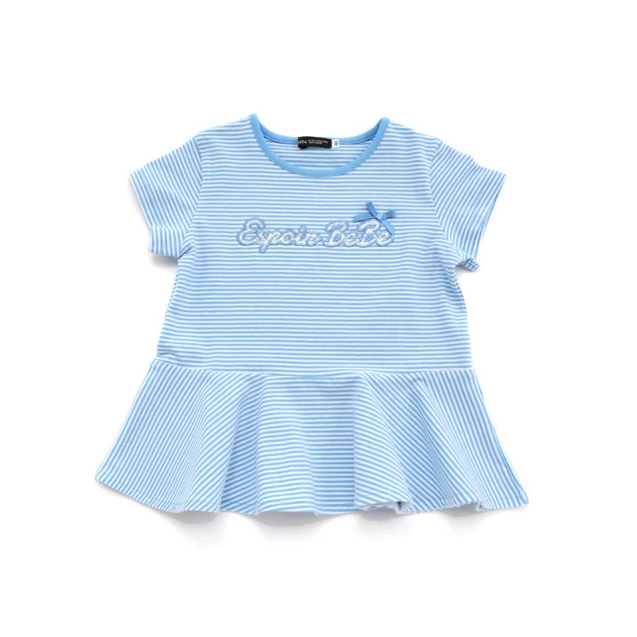 ボーダー天竺レースパッチ刺しゅうペプラム半袖Tシャツ(80~140cm)