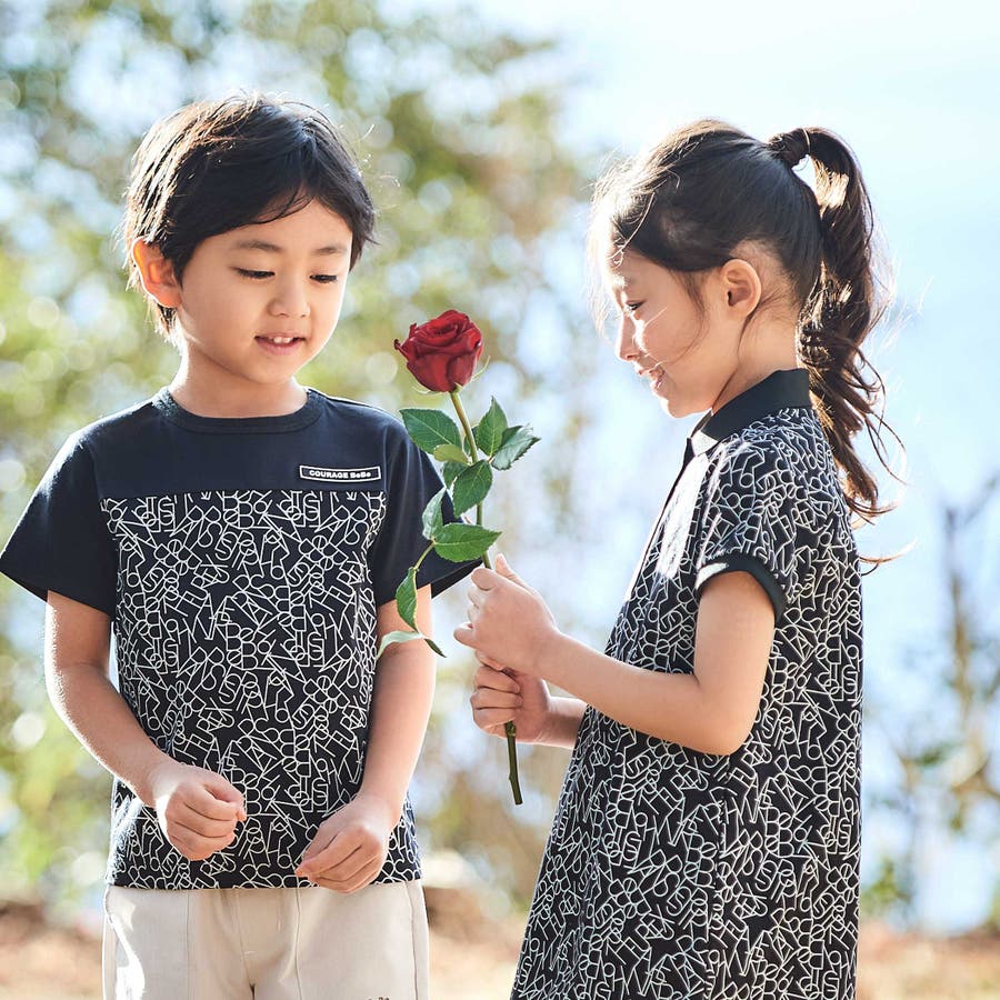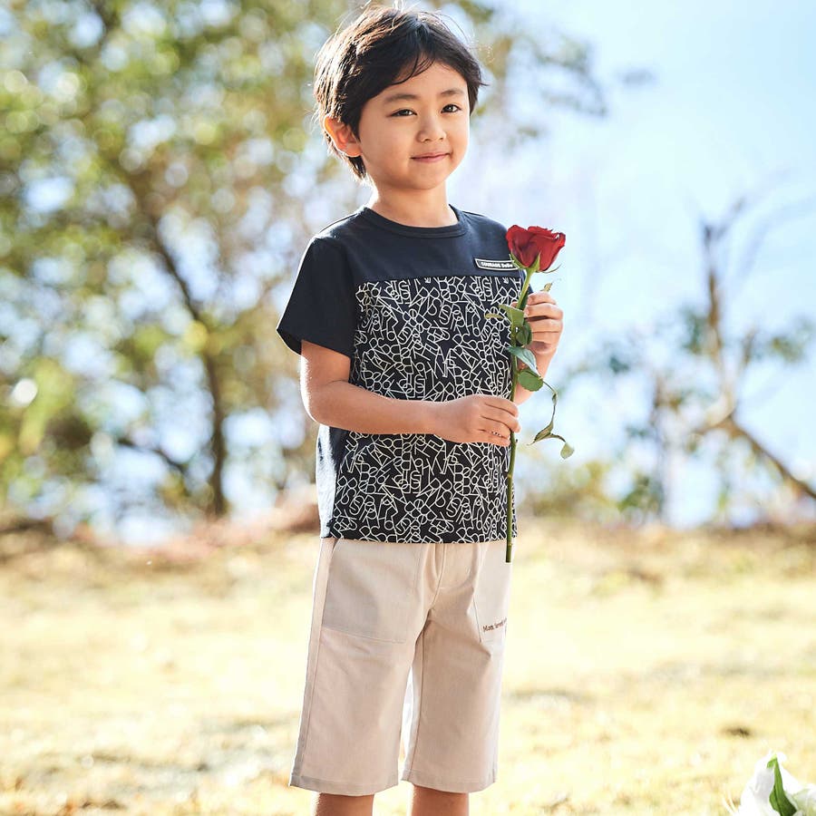 【お揃い】ジオメトリックロゴ総柄ポンチ半袖Tシャツ(90~160cm)