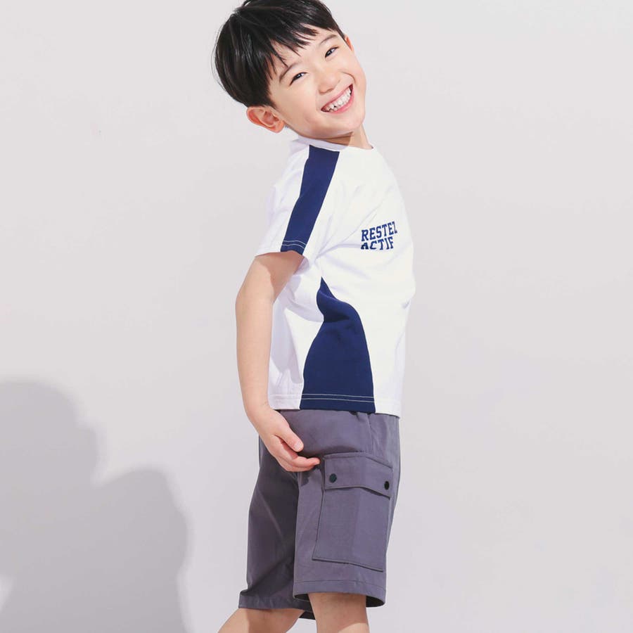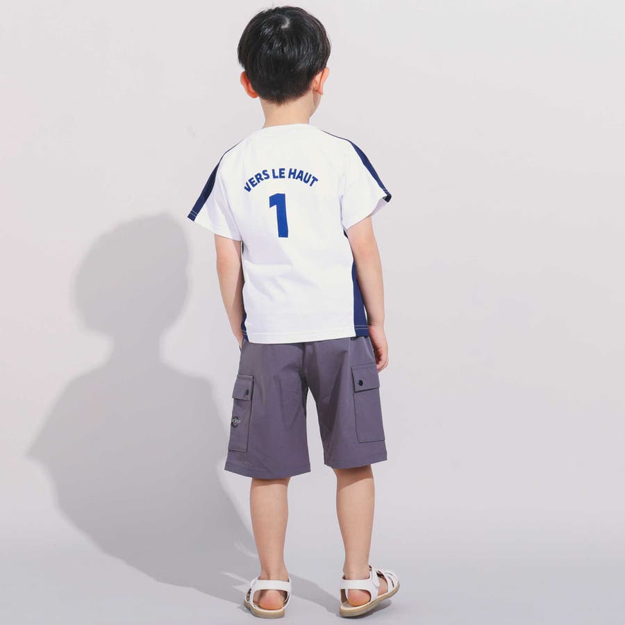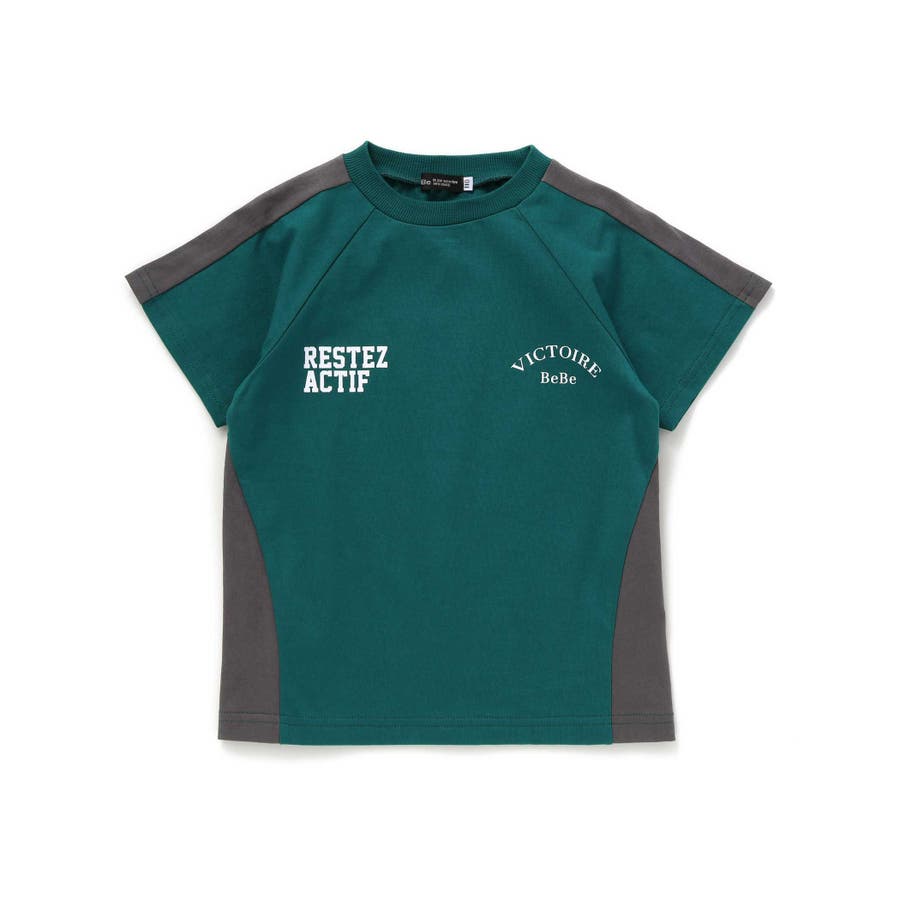 異素材切り替えバックナンバリングラグラン半袖Tシャツ(90~160cm)