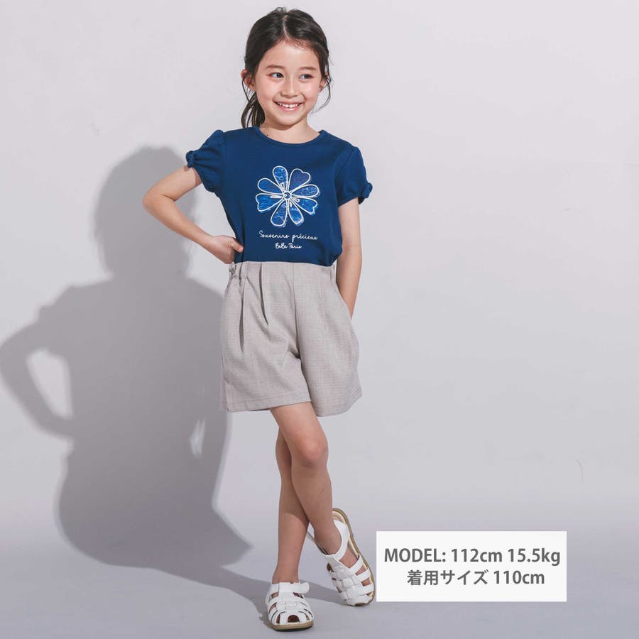 袖リボンフラワープリント天竺半袖Tシャツ(90~160cm)