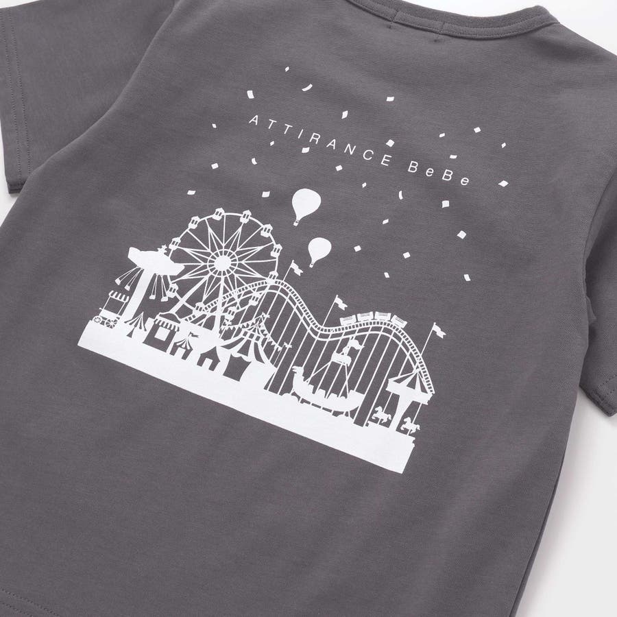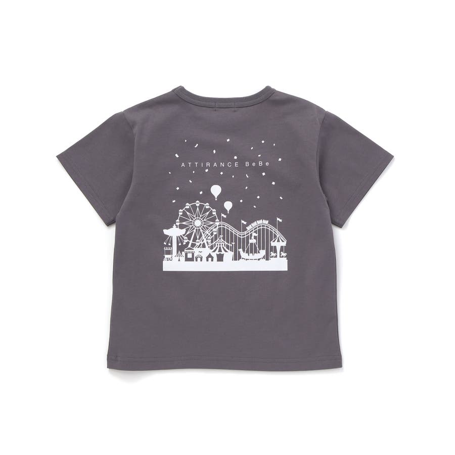 遊園地のテーマに合わせた前後プリントの半袖Tシャツ。