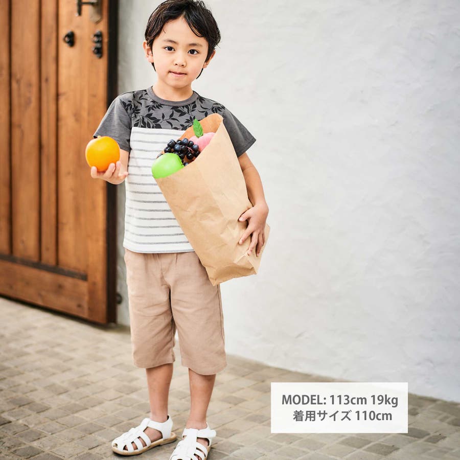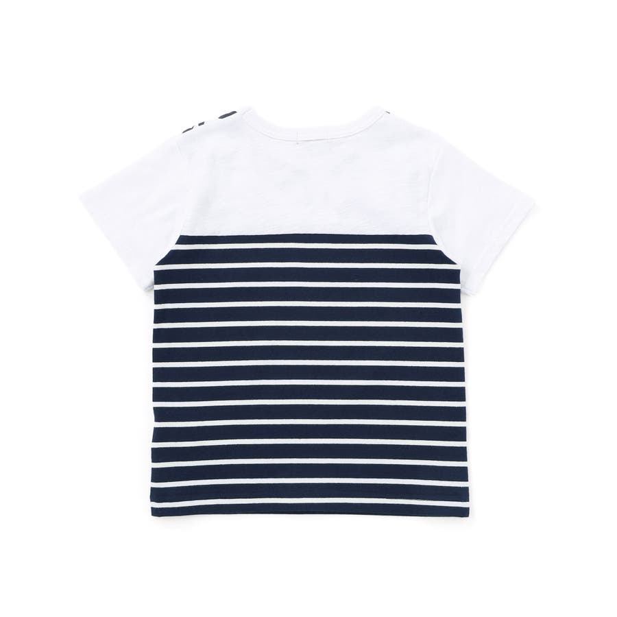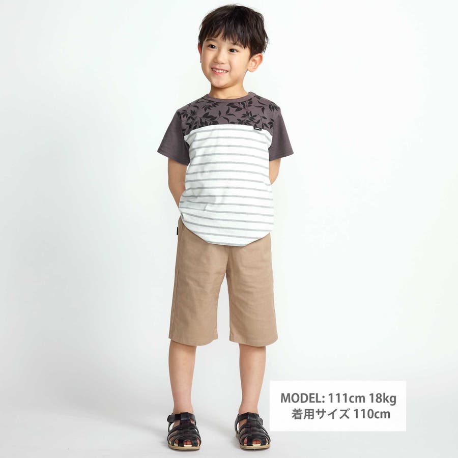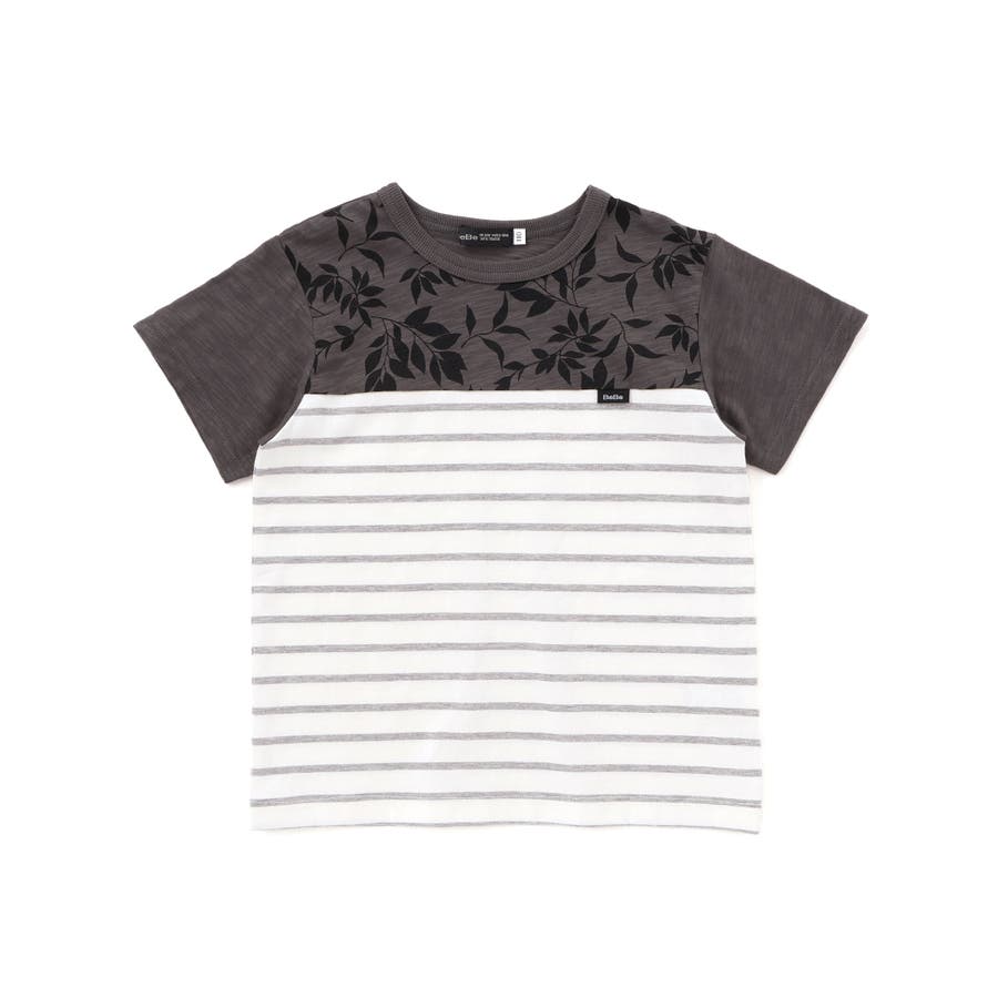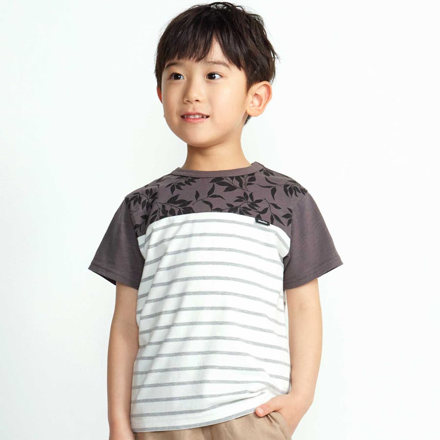 リーフ柄ボーダー切り替え天竺半袖Tシャツ(90~150cm)