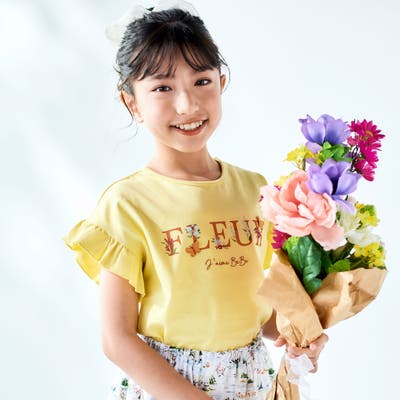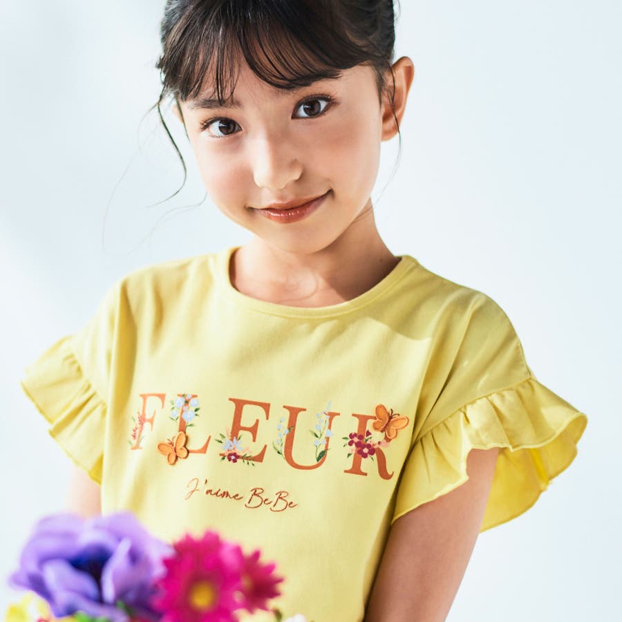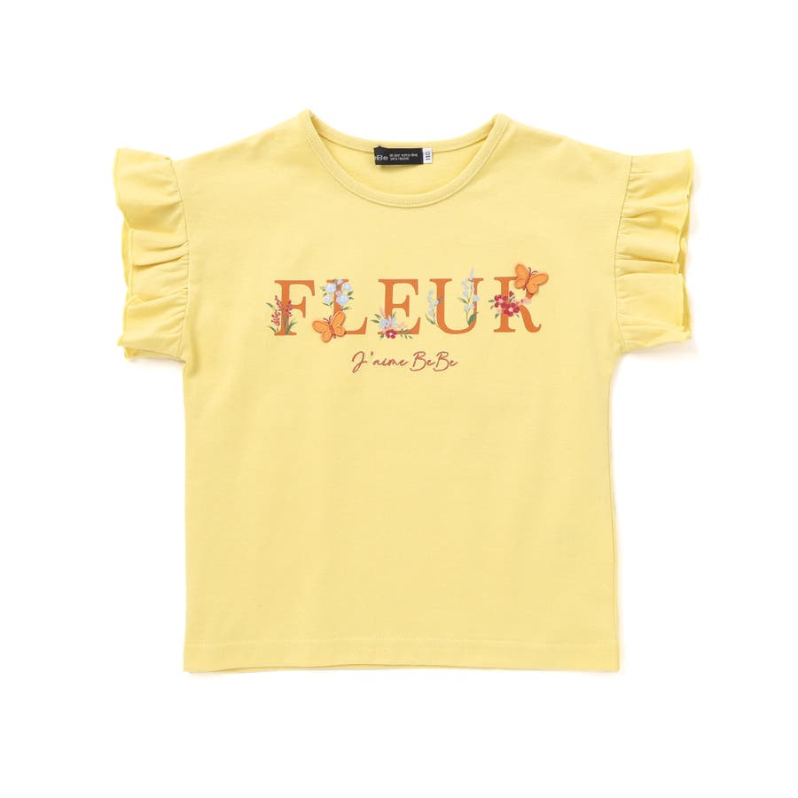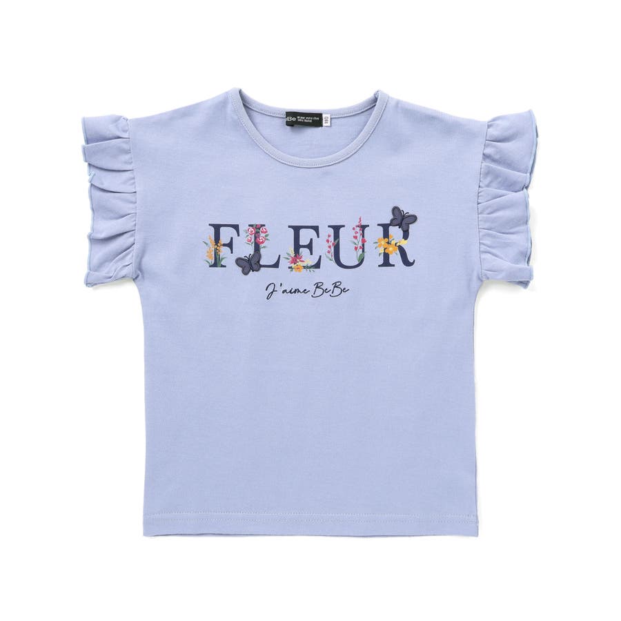 ちょうちょモチーフFLEURロゴ天竺フリル袖Tシャツ(90~160cm)