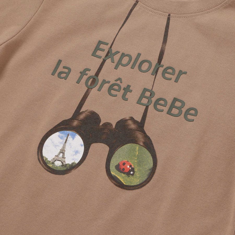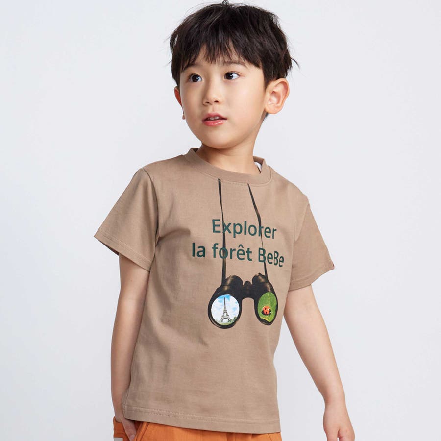 双眼鏡のプリントがキャッチーで目を引く半袖Tシャツ。