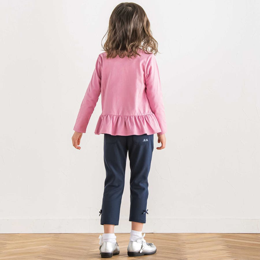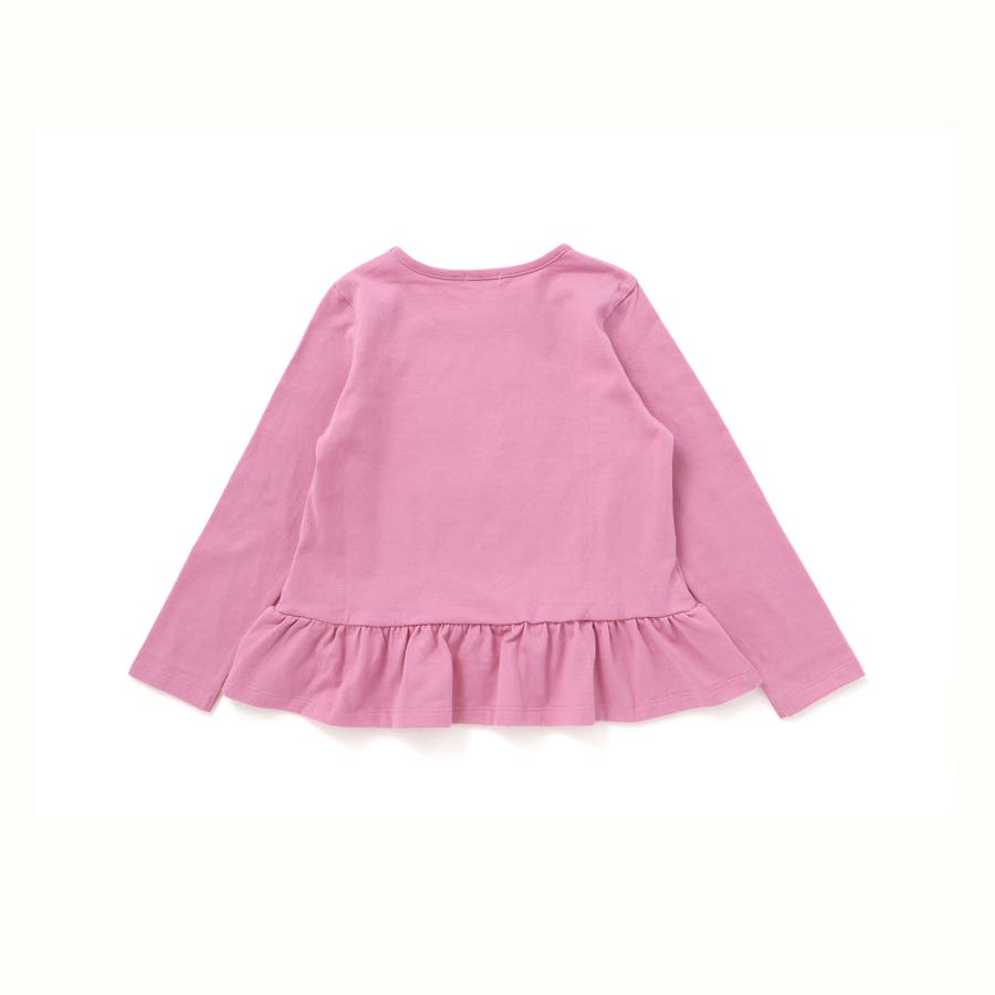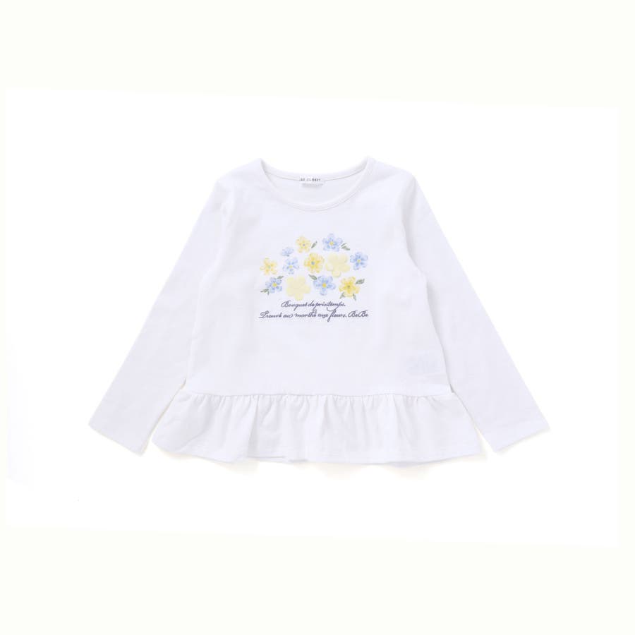 【抗菌防臭 UVカット】ペプラムフリルフラワーモチーフ天竺長袖Tシャツ(90~1…