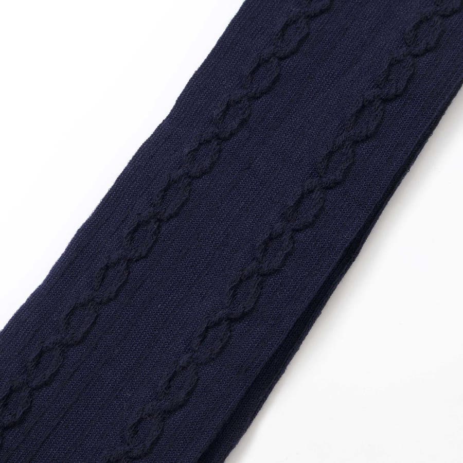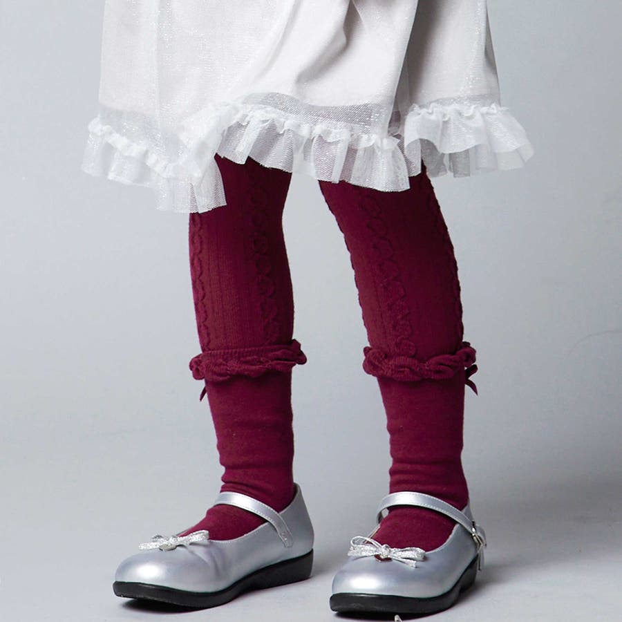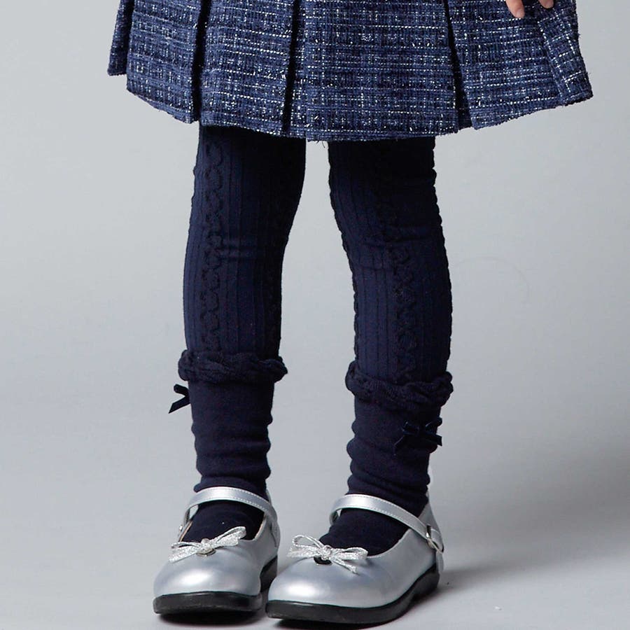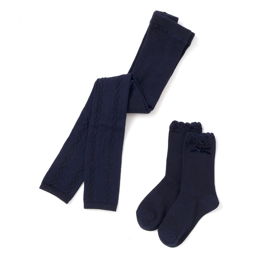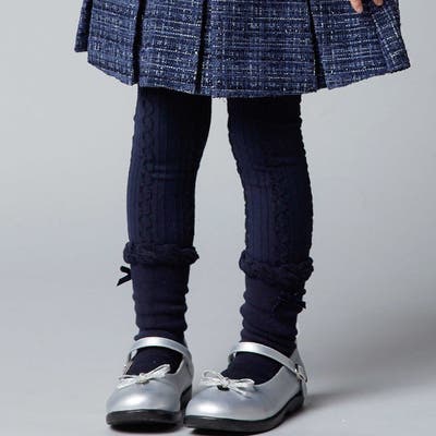 品の良いケーブル編みのレギンスとワンポイントでリボンのついたソックスのセット。