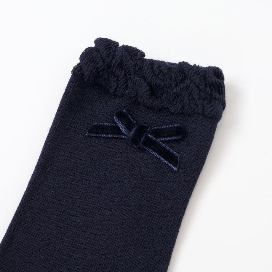 ソックスは履き口を柔らかくギャザーを入れた編地にしてフリル状にふっくらと見える仕様。