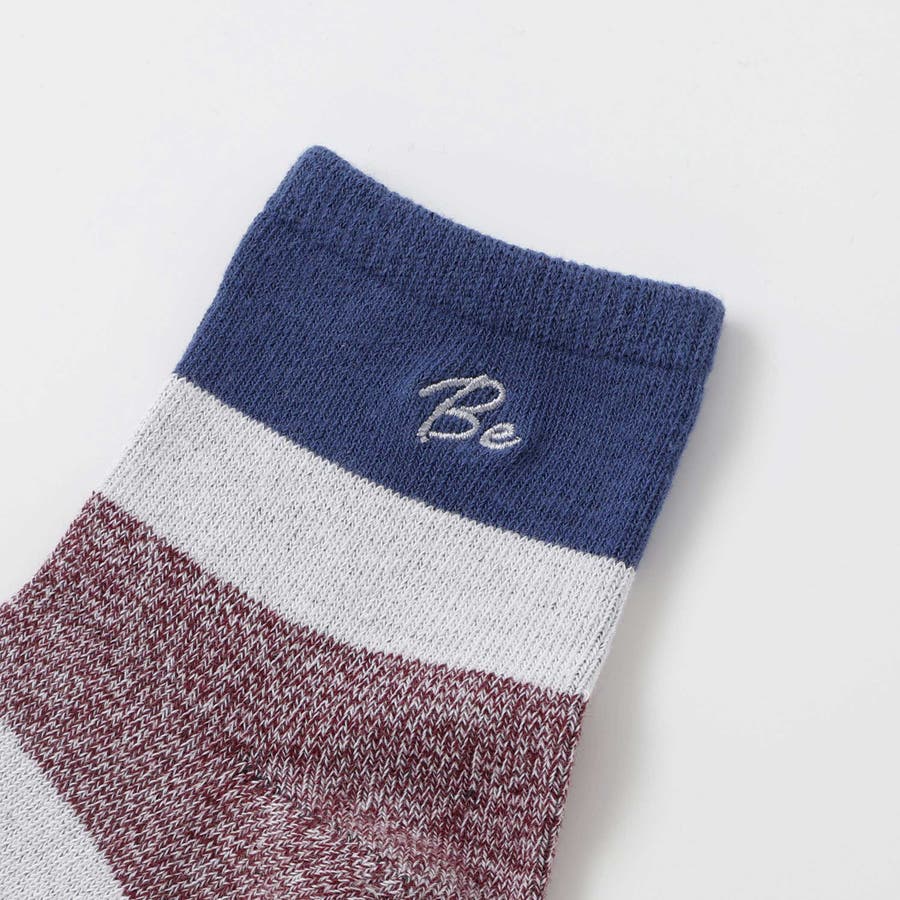 幅広のランダムな配色がおしゃれなクルーソックス。