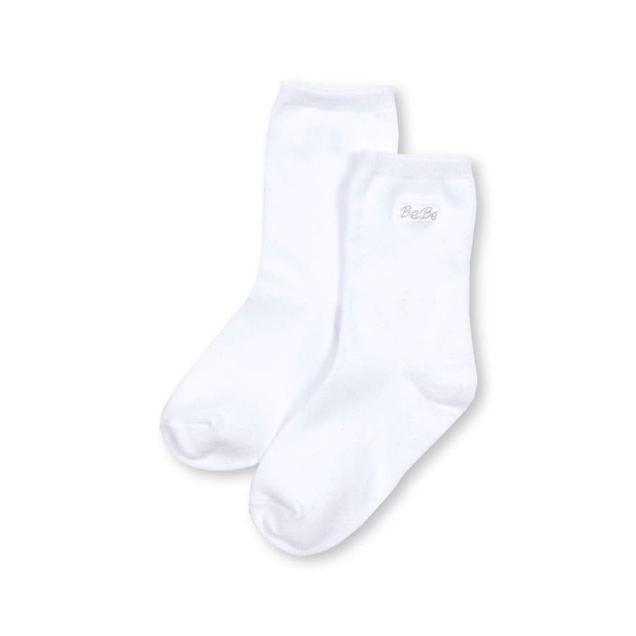 BeBeのロゴ刺しゅうがアクセントになったクルーソックス。