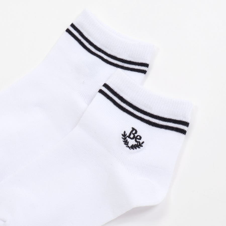 エンブレム風の刺しゅうとラインがアクセントになったクルーソックス。