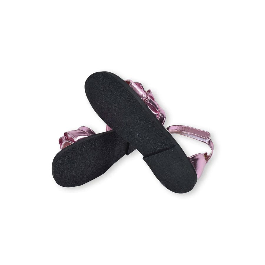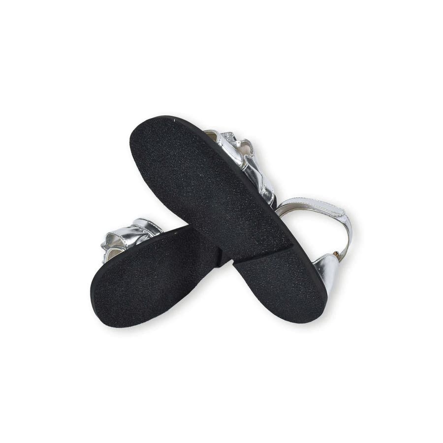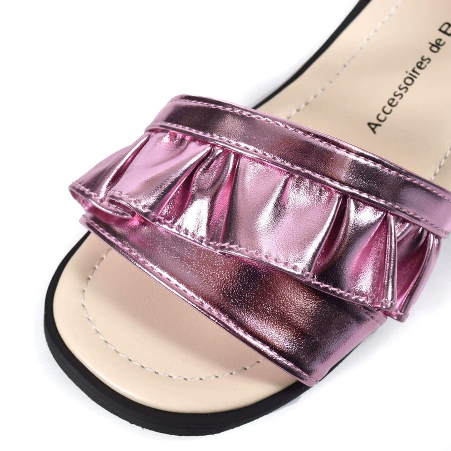 メタリックな素材とフリルで作る大人っぽいデザインが、足元を華やかに飾ってくれます。