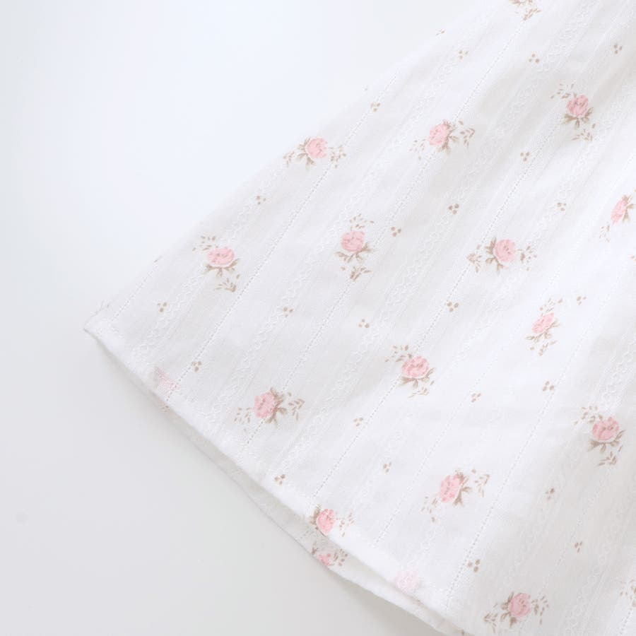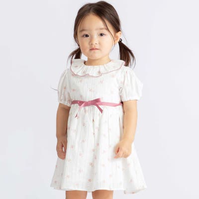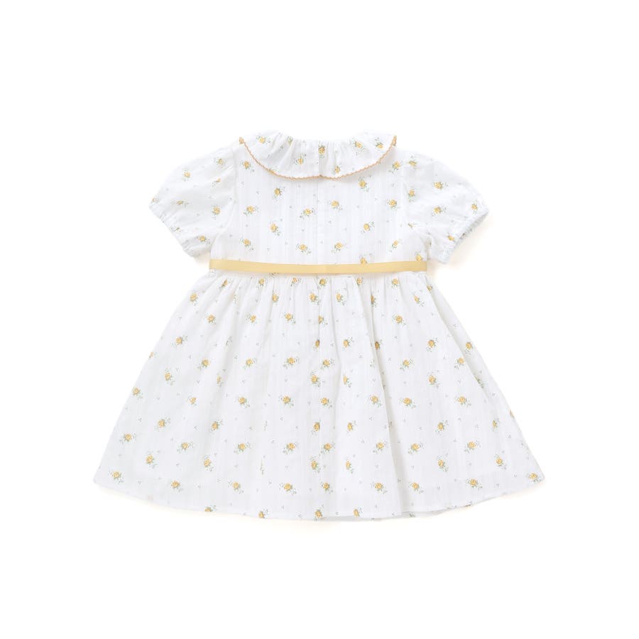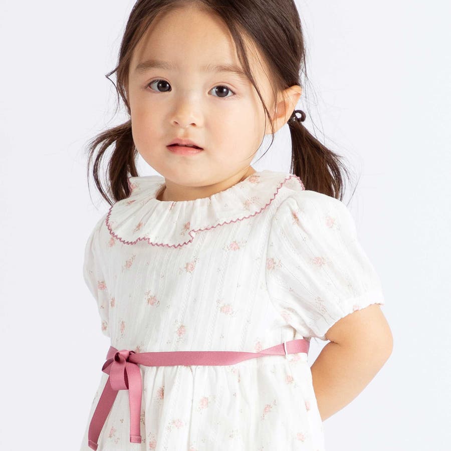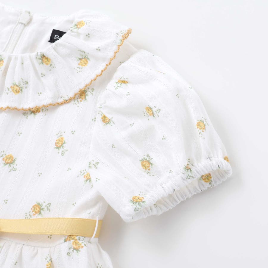 【お揃い】花柄フリルカラーパフスリーブワンピース(80~100cm)