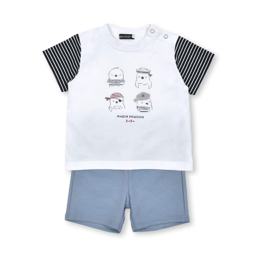 ひよこ水兵プリント切り替えTシャツ+パンツセット(80~90cm)