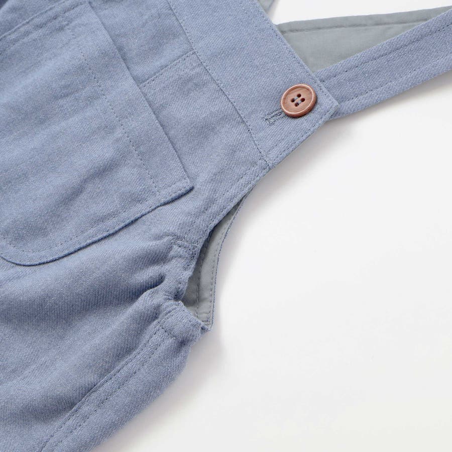 オーバーオールはスラブガーゼの生地を使用しており、柔らかい肌当たりと軽い質感で着心地◎