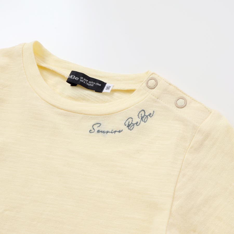 Tシャツは首ぐりに入ったロゴ刺しゅうとニーパッチのデザインがシンプルかつおしゃれ。