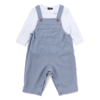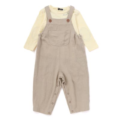 スラブ天竺肘パッチ長袖Tシャツ+オーバーオールセット(80~90cm)