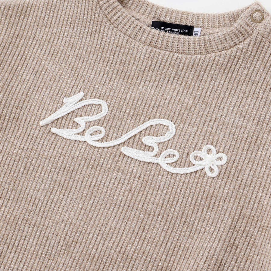 ニットテープで表現した BeBeのロゴとクローバーがナチュラルなかわいらしさです。