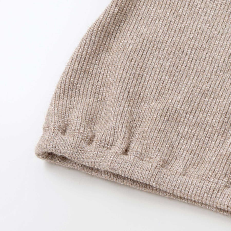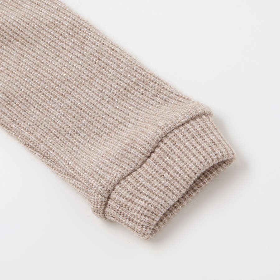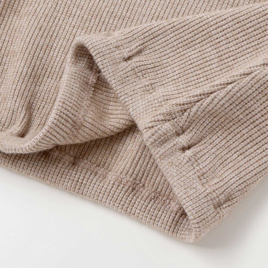 光沢感のあるラメ糸を織り込んだ起毛リブ。