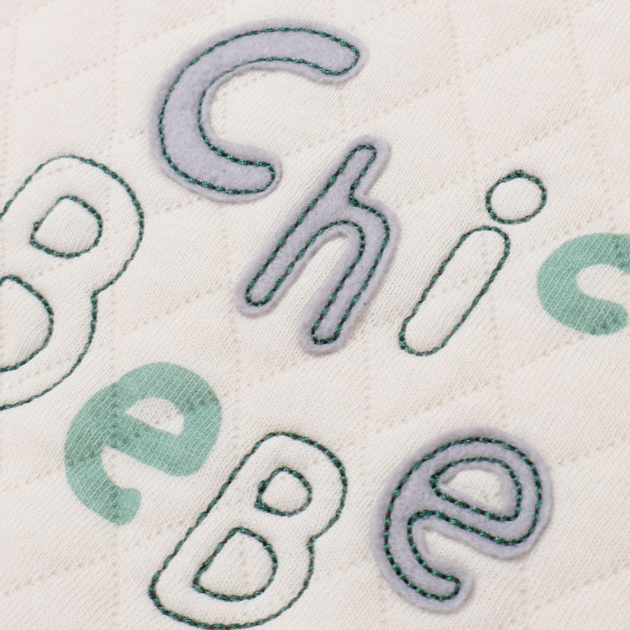 プリントやフェルトパッチ、ステッチ刺しゅうで表現した丸みのあるロゴが可愛いデザイン。