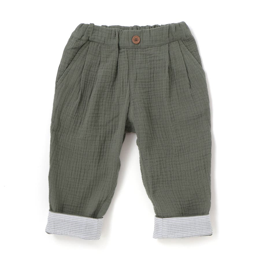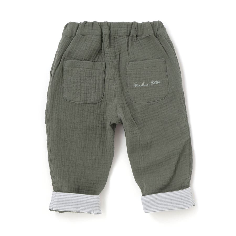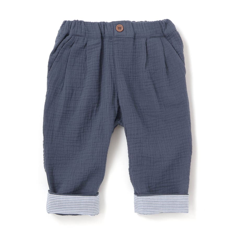 コットンガーゼ裾ボーダーロングパンツ(80~100cm)