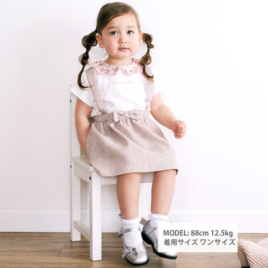 リネン調メランジサスペンダー付きギャザースカート(80~100cm)