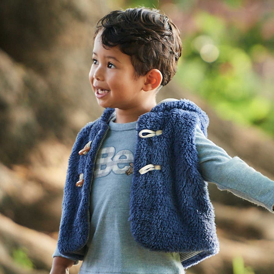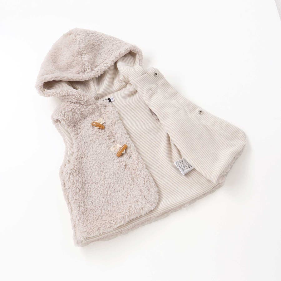 トグルボタンフード付きボアベスト(90~100cm)