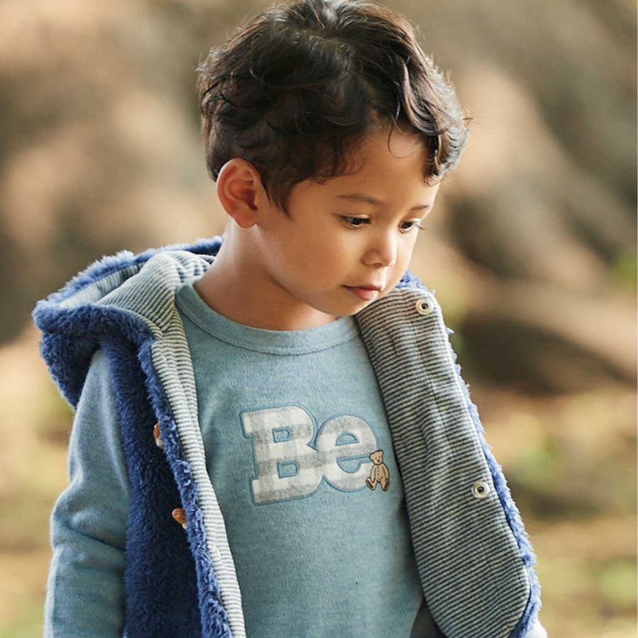 Beパッチ刺しゅうスムース長袖Tシャツ(80~100cm)