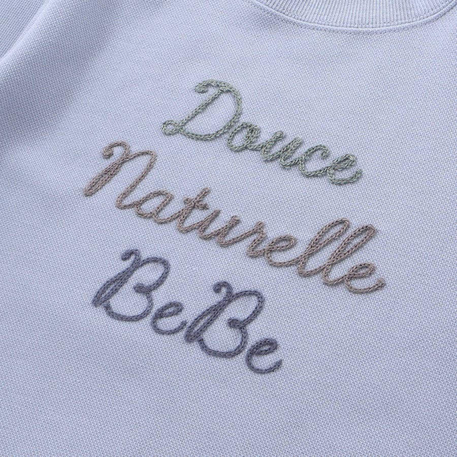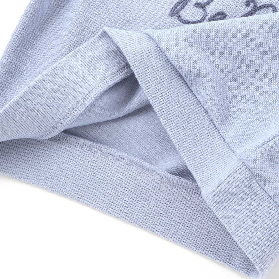 太めの糸を使用したチェーンステッチの刺しゅうロゴがおしゃれ見え。