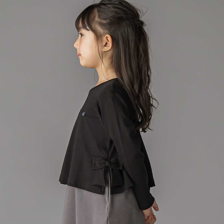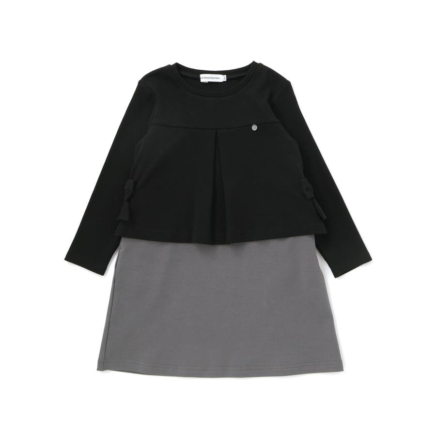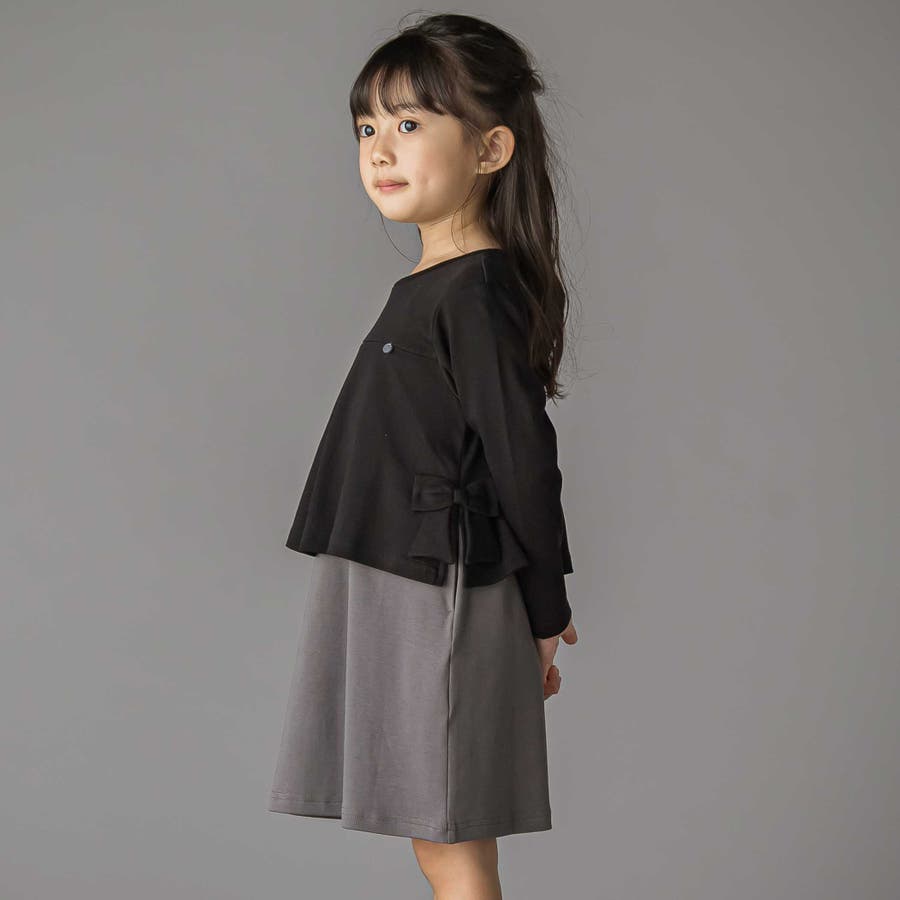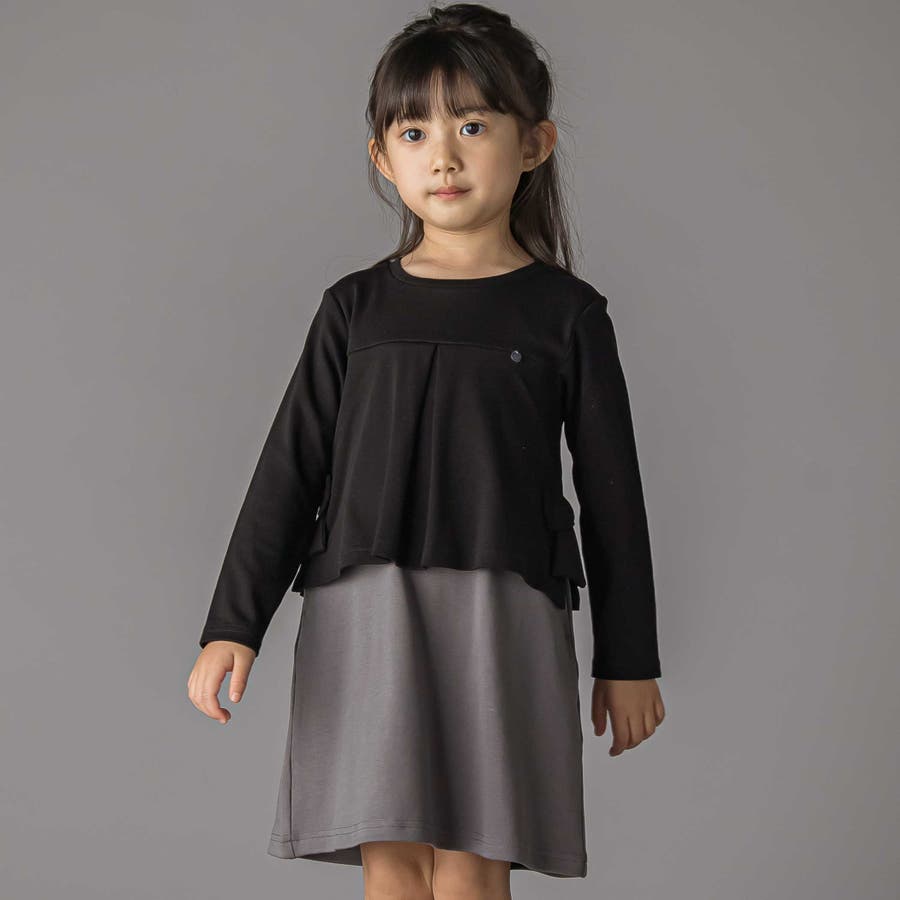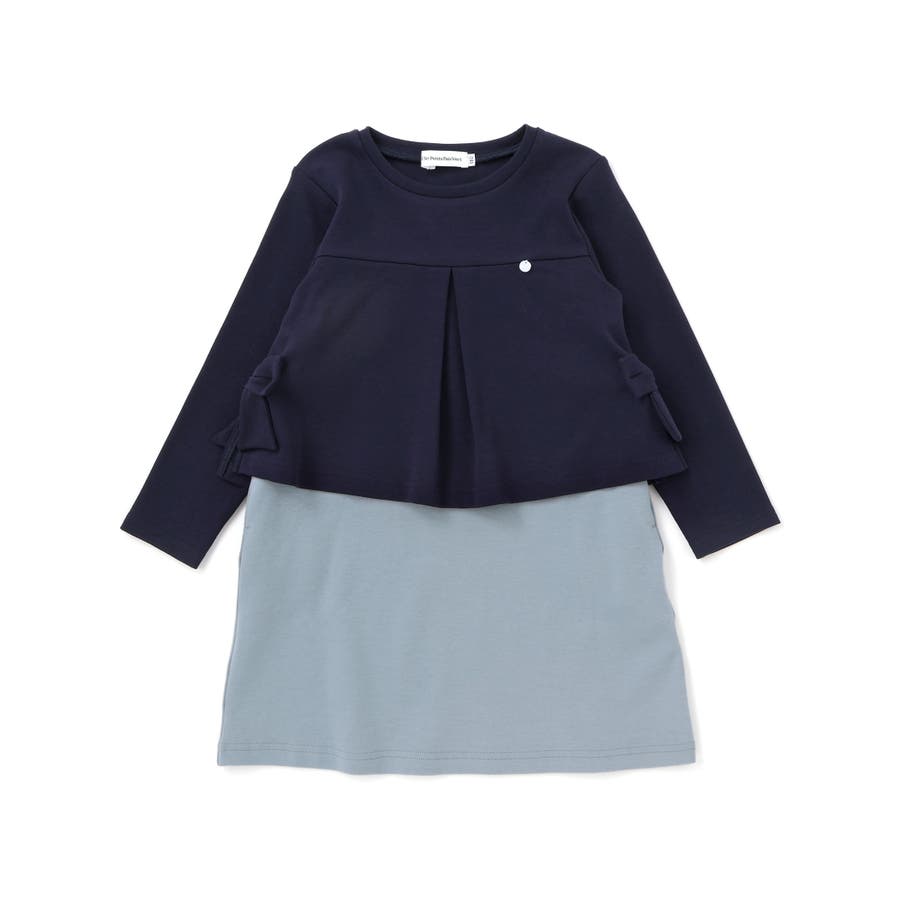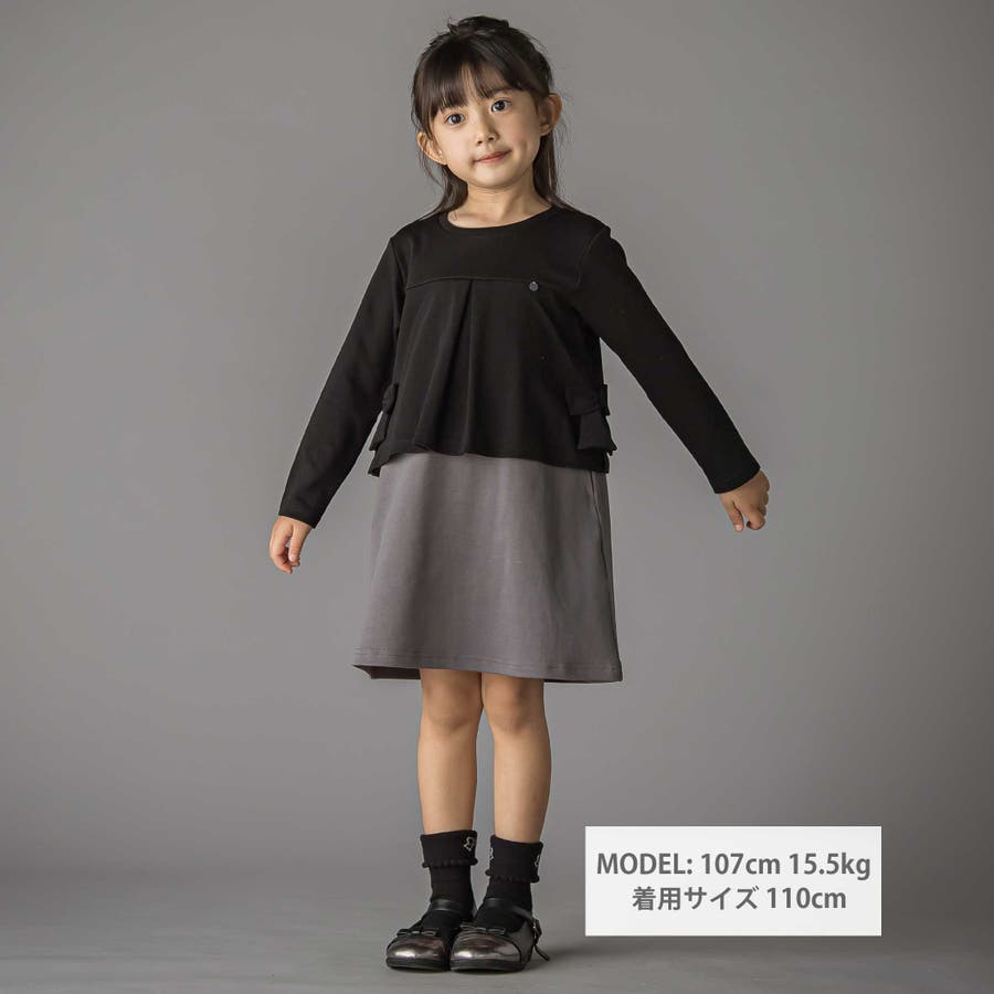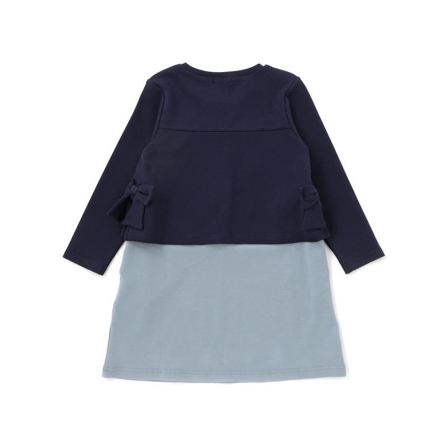 【店舗限定】重ね着風配色ポンチ長袖ワンピース(95~150cm)