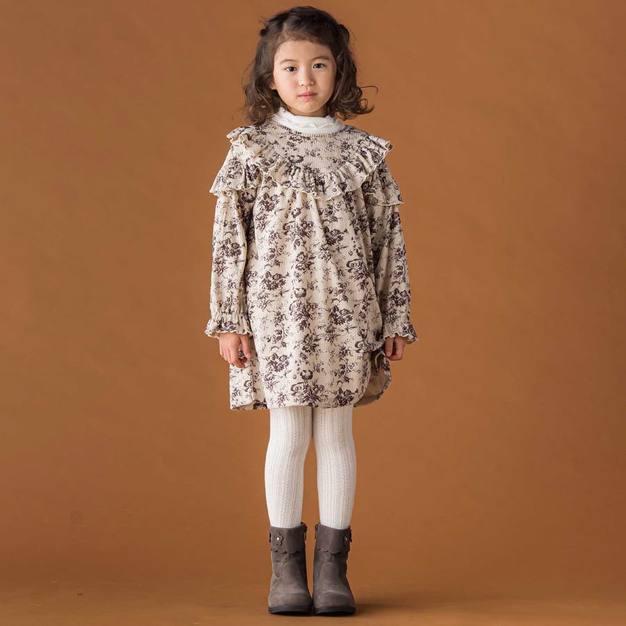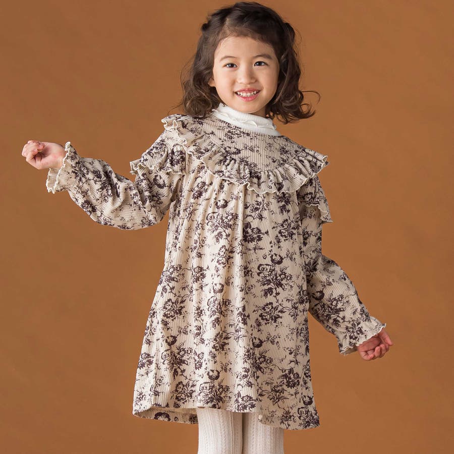 【ベージュ系】【店舗限定】花柄コールテンフリルワンピース(95~150cm)