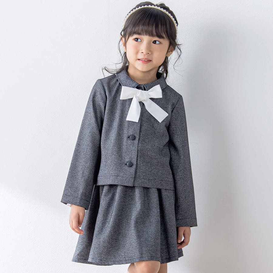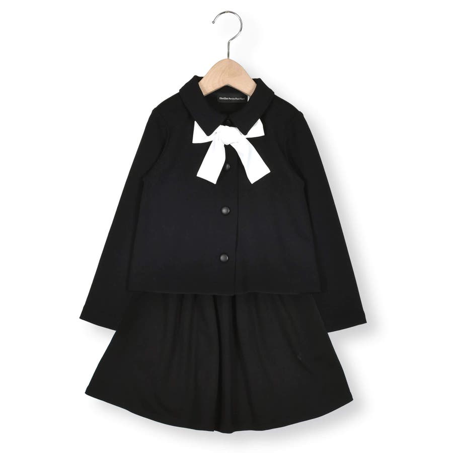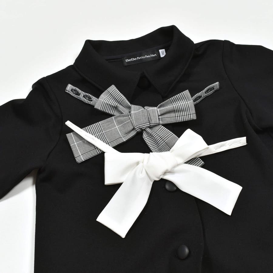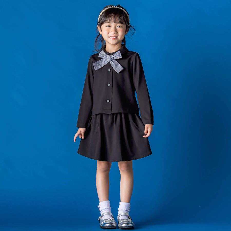 【お揃い】リボン付きチェック無地フォーマルスーツ上下セット(110~130cm)