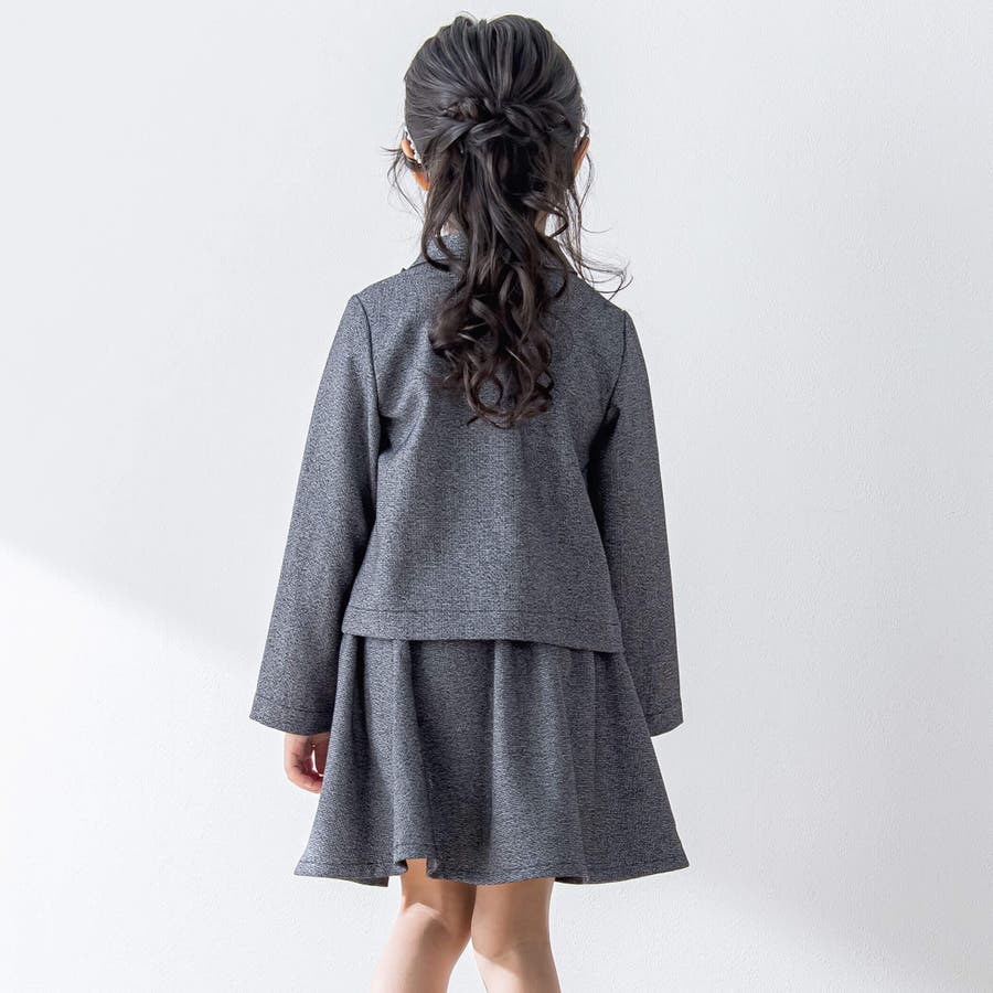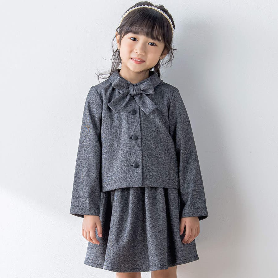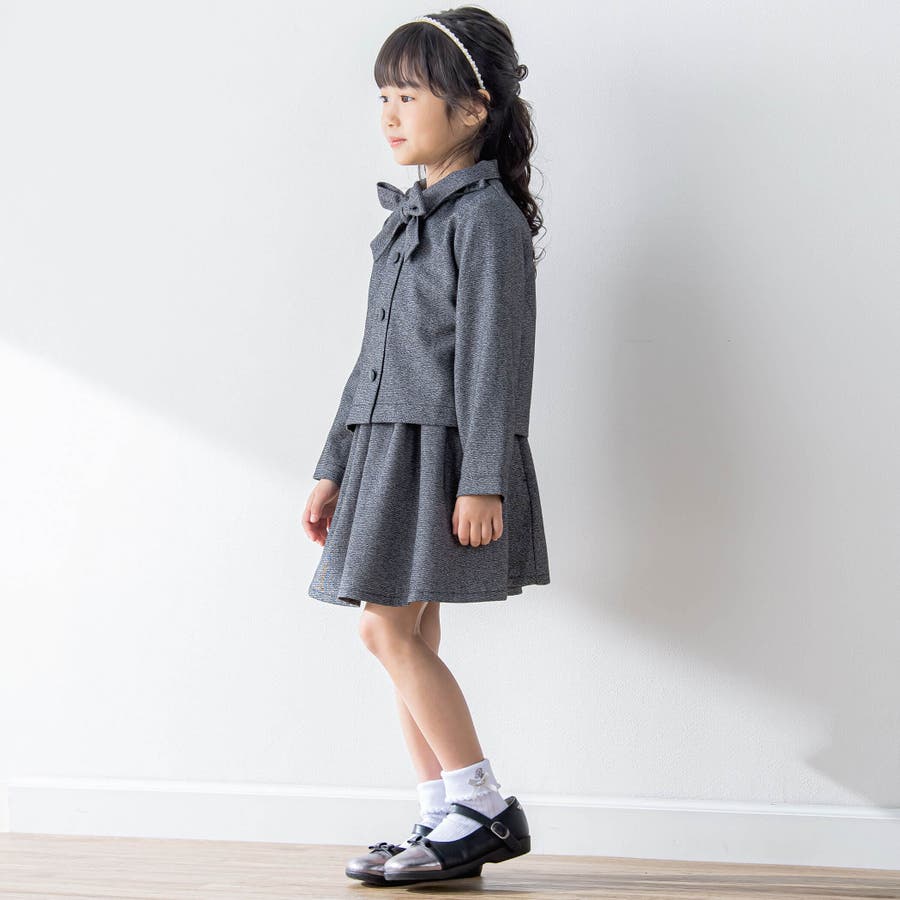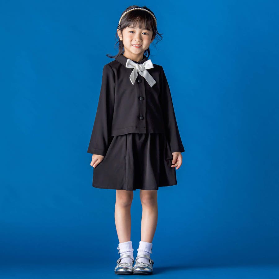 【お揃い】リボン付きチェック無地フォーマルスーツ上下セット(110~130cm)