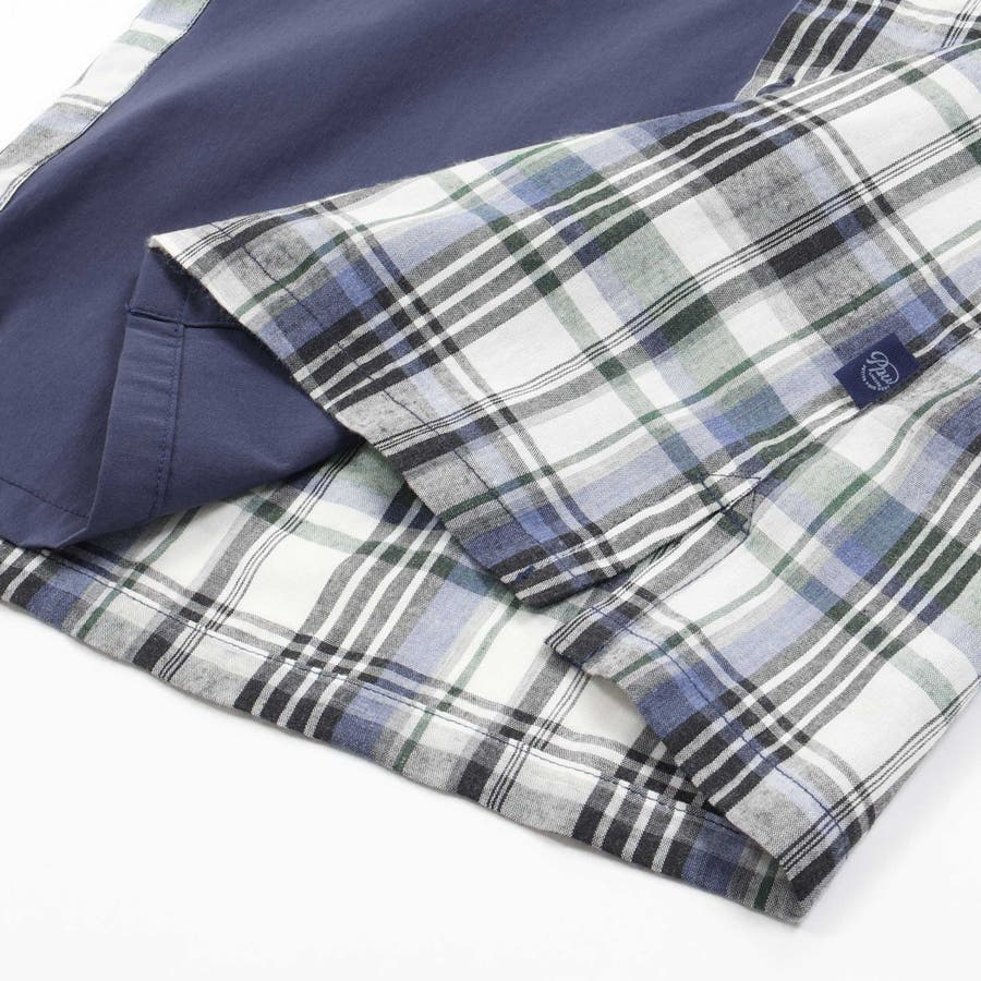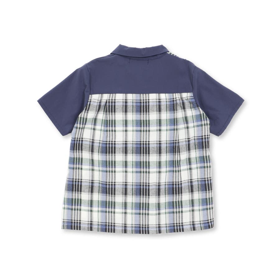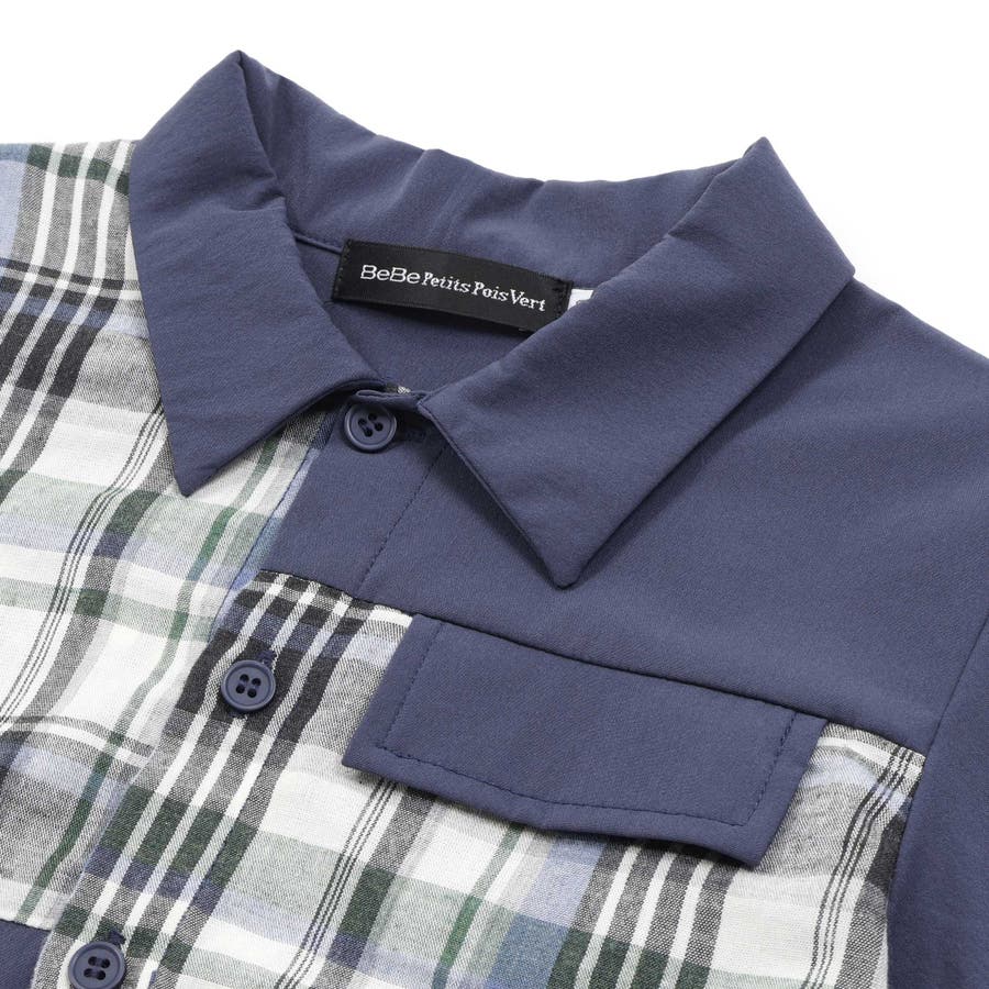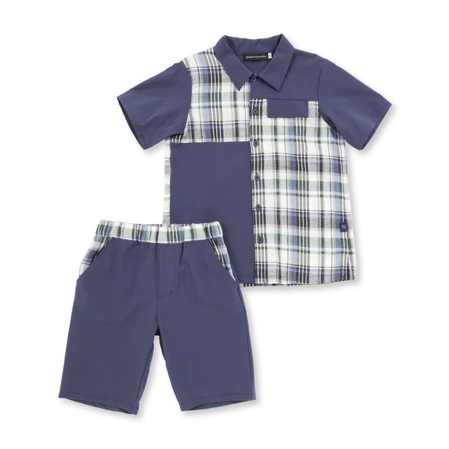 チェック&無地切り替え半袖シャツ+ハーフパンツセットアップ(95~150cm)