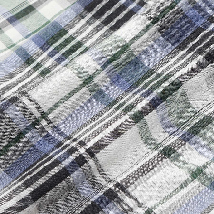 半袖のシャツは首元が詰まりすぎないカジュアルなデザイン。