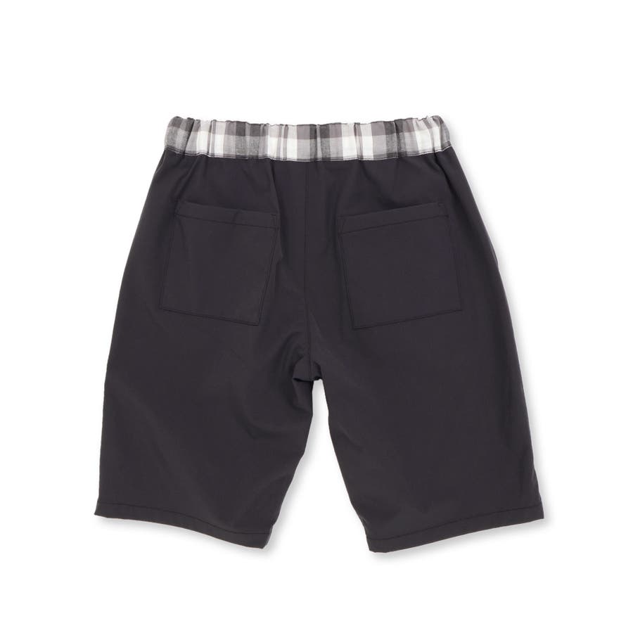 パンツはストレッチの効いた無地の生地と全体に使用して、チェックの生地をポイント使いしています。
