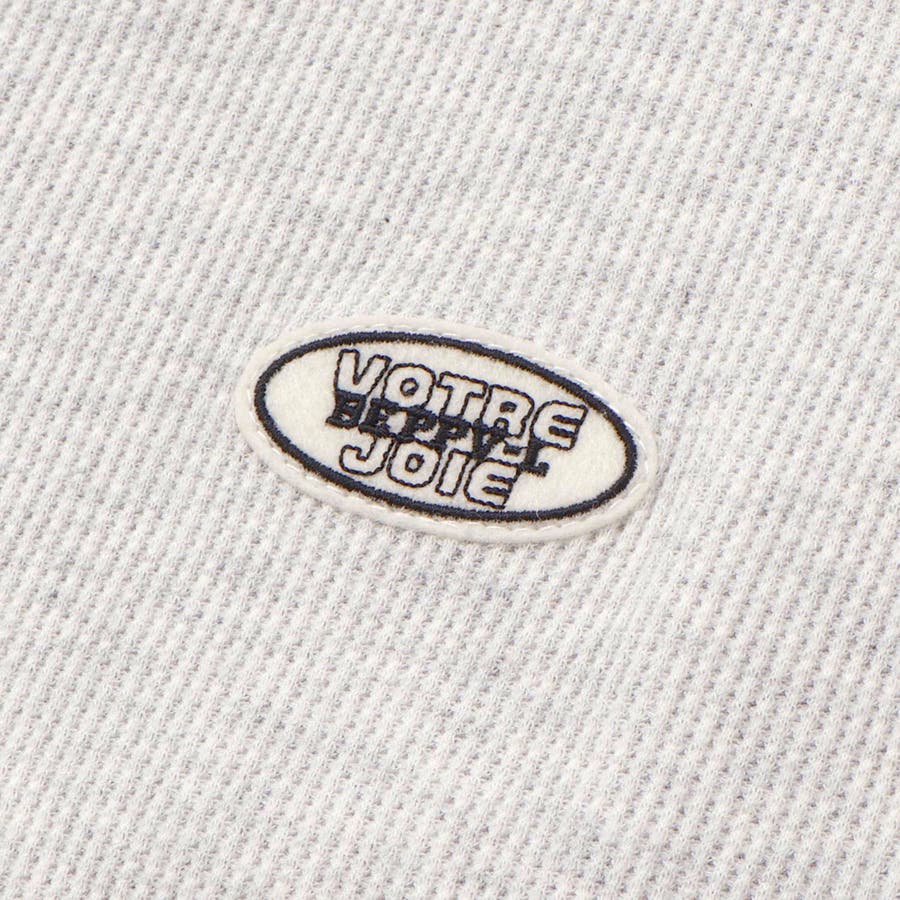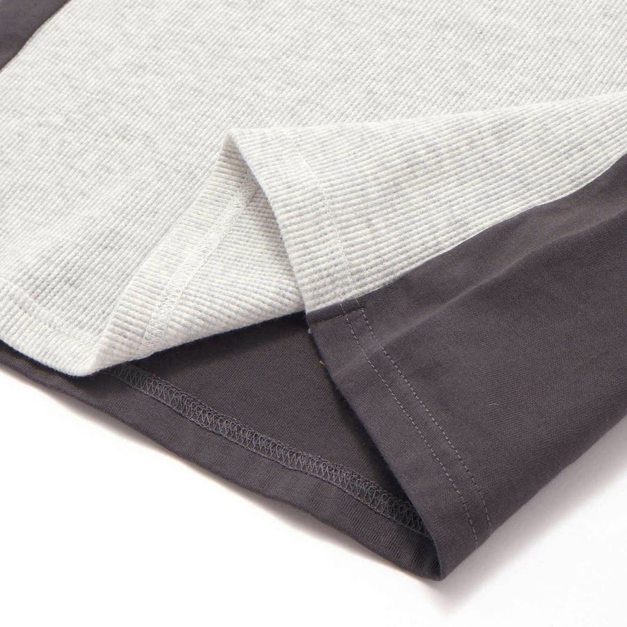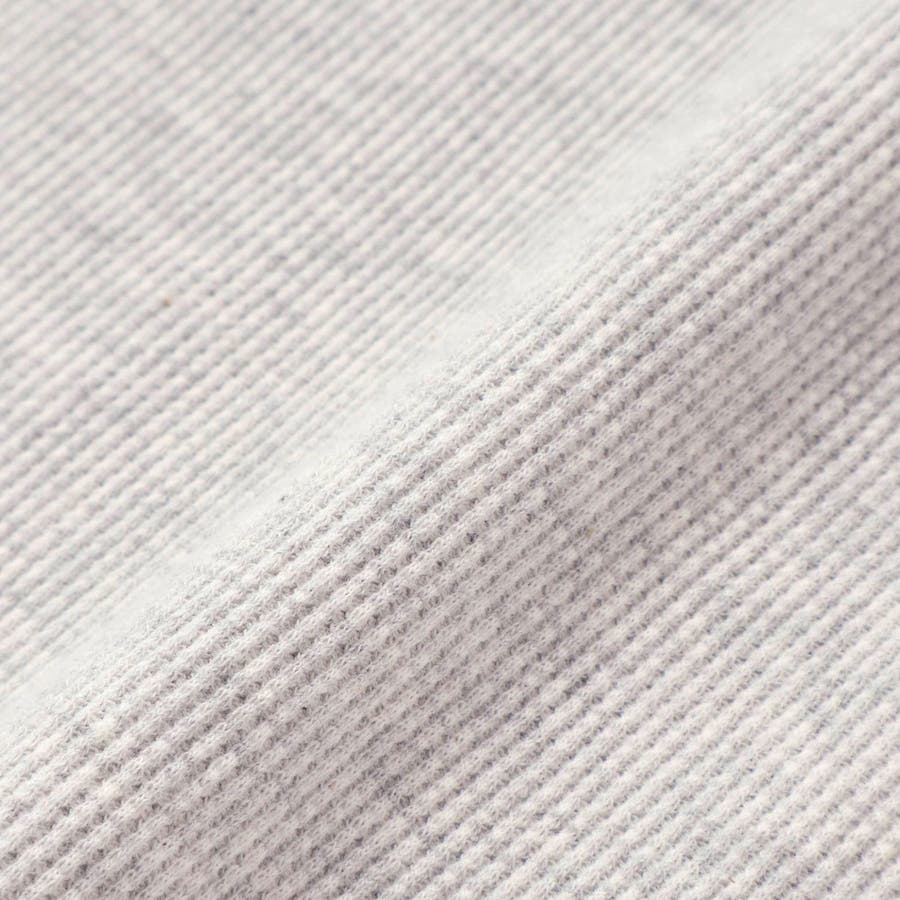 前身頃に使用した立体感のあるワッフル生地は、肌触りが良く、吸汗性にも優れています。