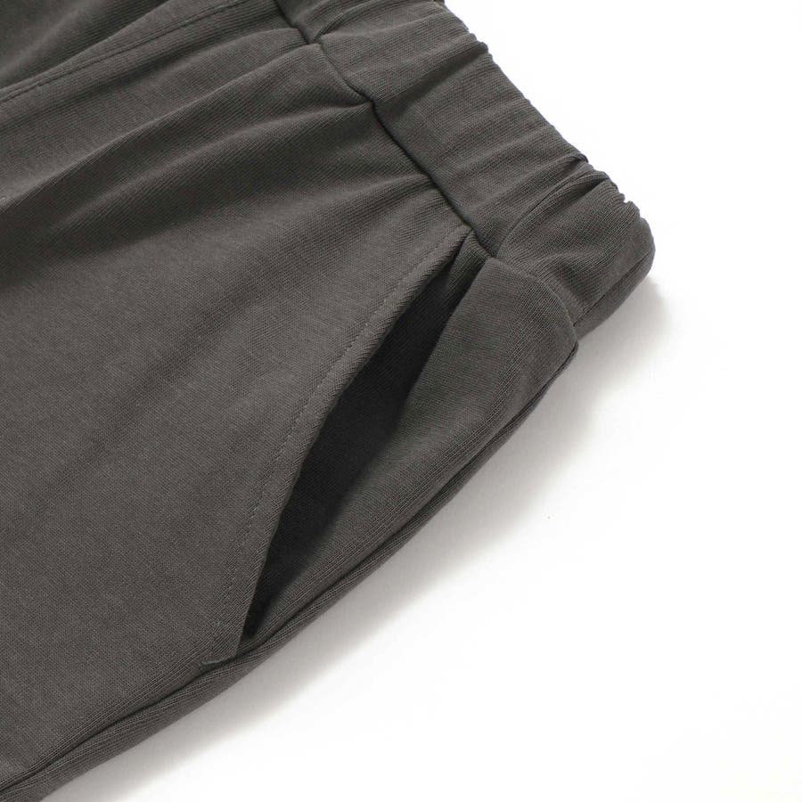 後ろ身頃とパンツには、柔らかく、さらりとした肌触りの天竺を使用していて着心地が抜群です。
