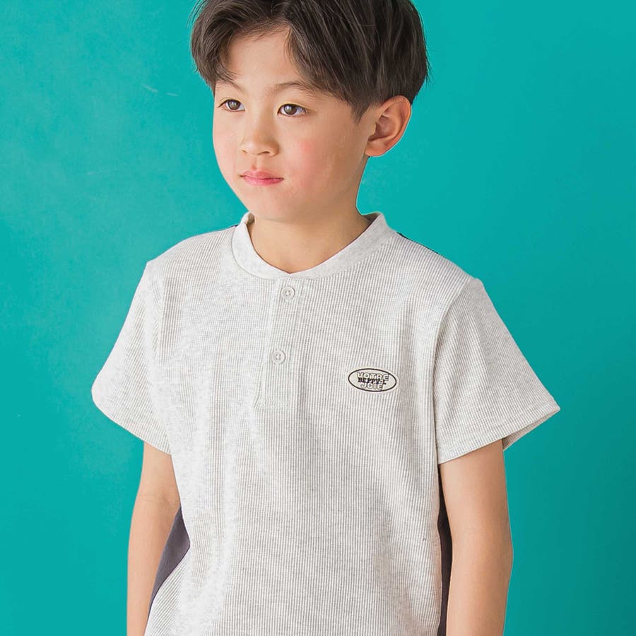 ワッフル×天竺ワッペン半袖Tシャツ+ショートパンツセットアップ