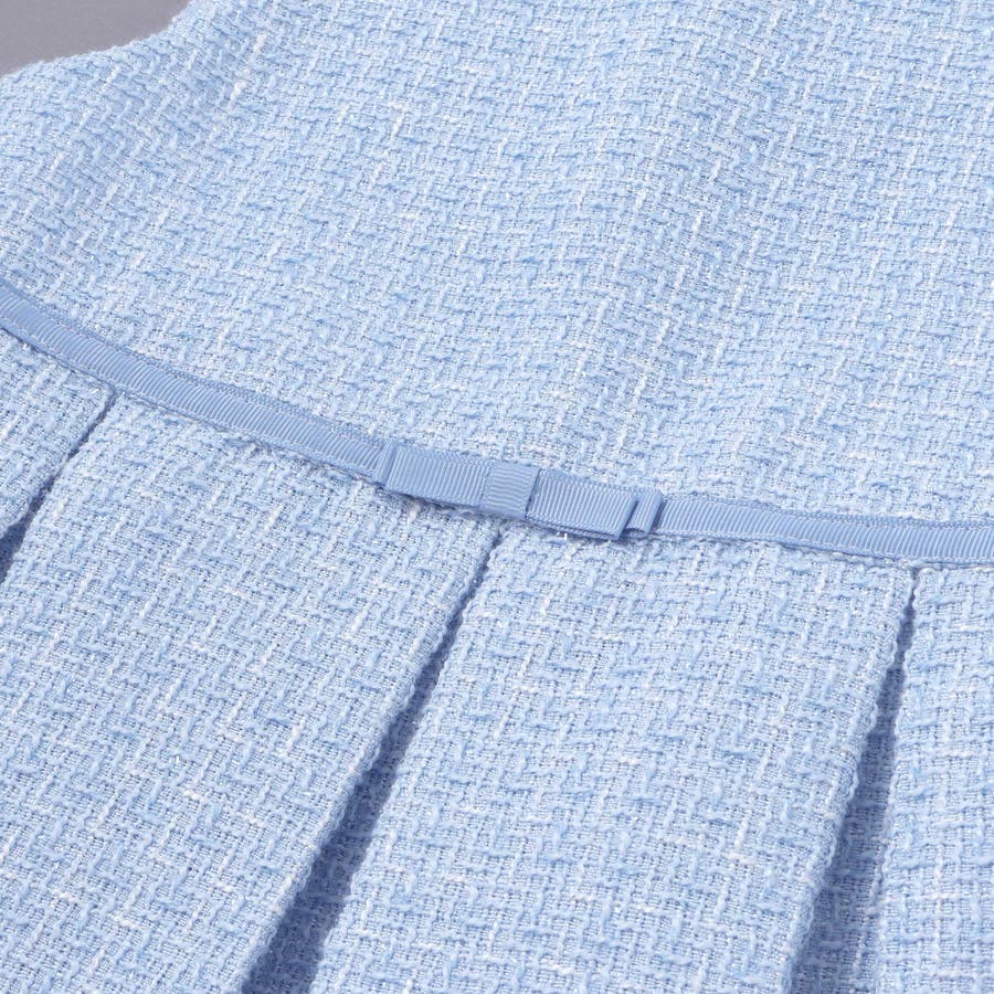 ラメツイードの立体感が際立つジャンパースカートは、大きなプリーツのふんわりとしたAライン。