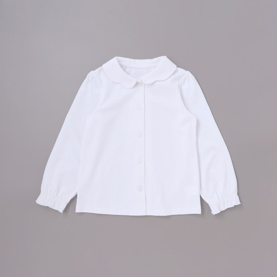 インナーのスカラップ襟ブラウスはお顔周りを清楚に演出します。