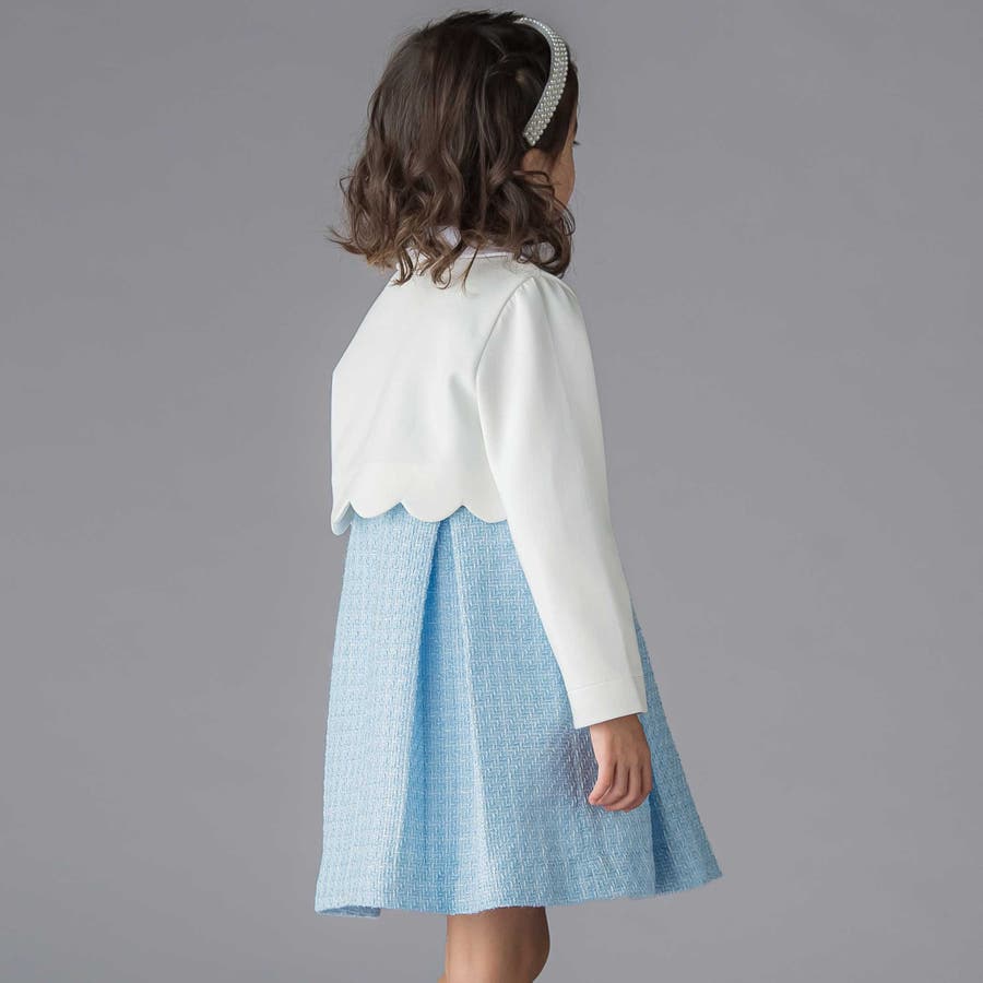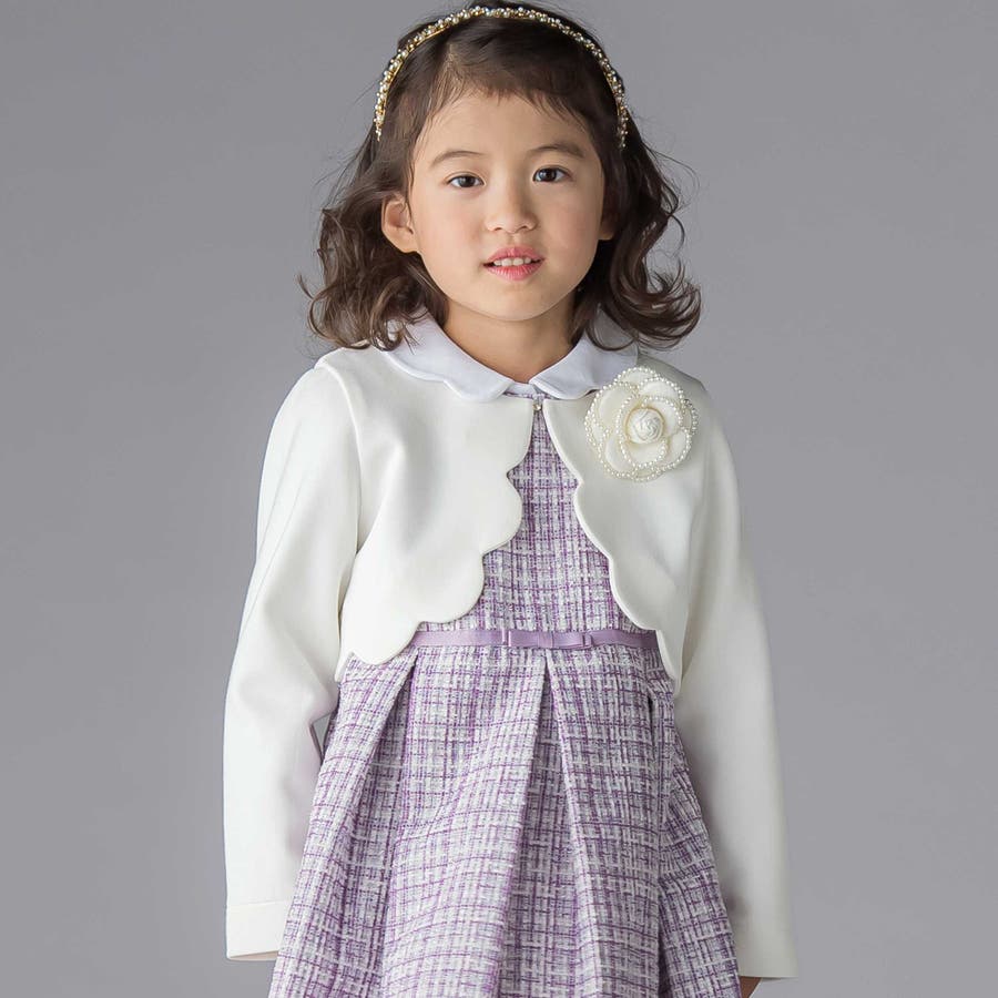 スカラップカットが可憐なボレロは、スカートに合わせたショート丈。