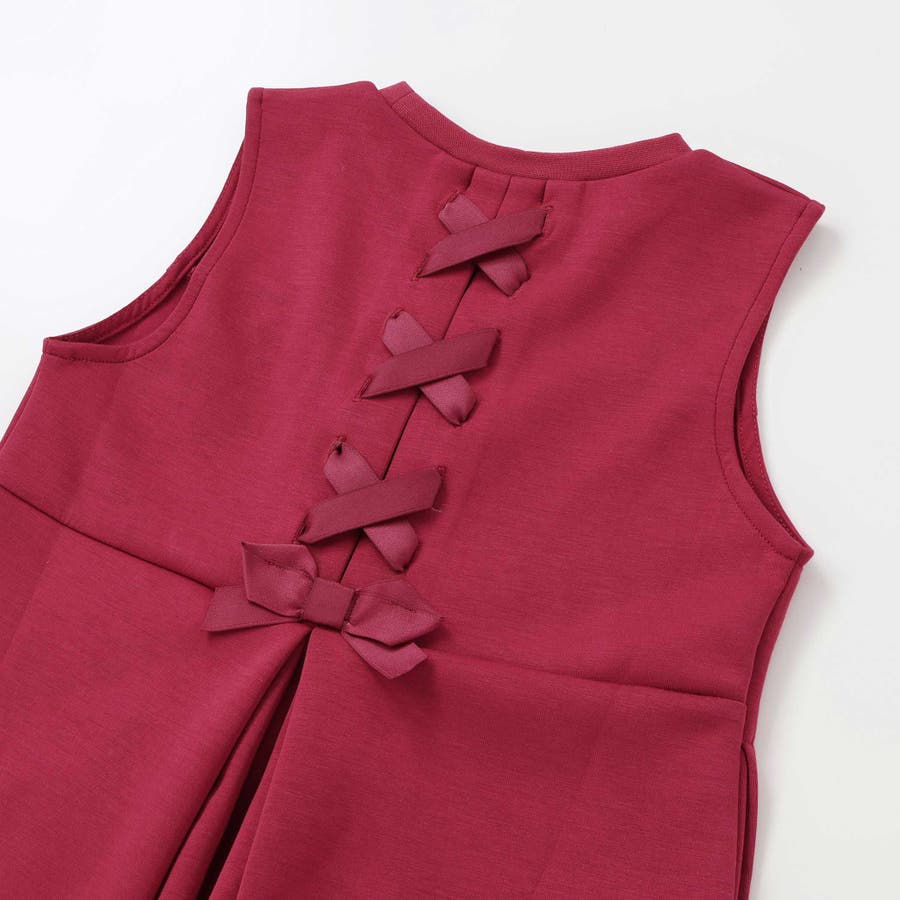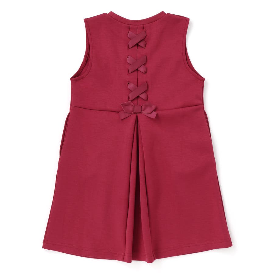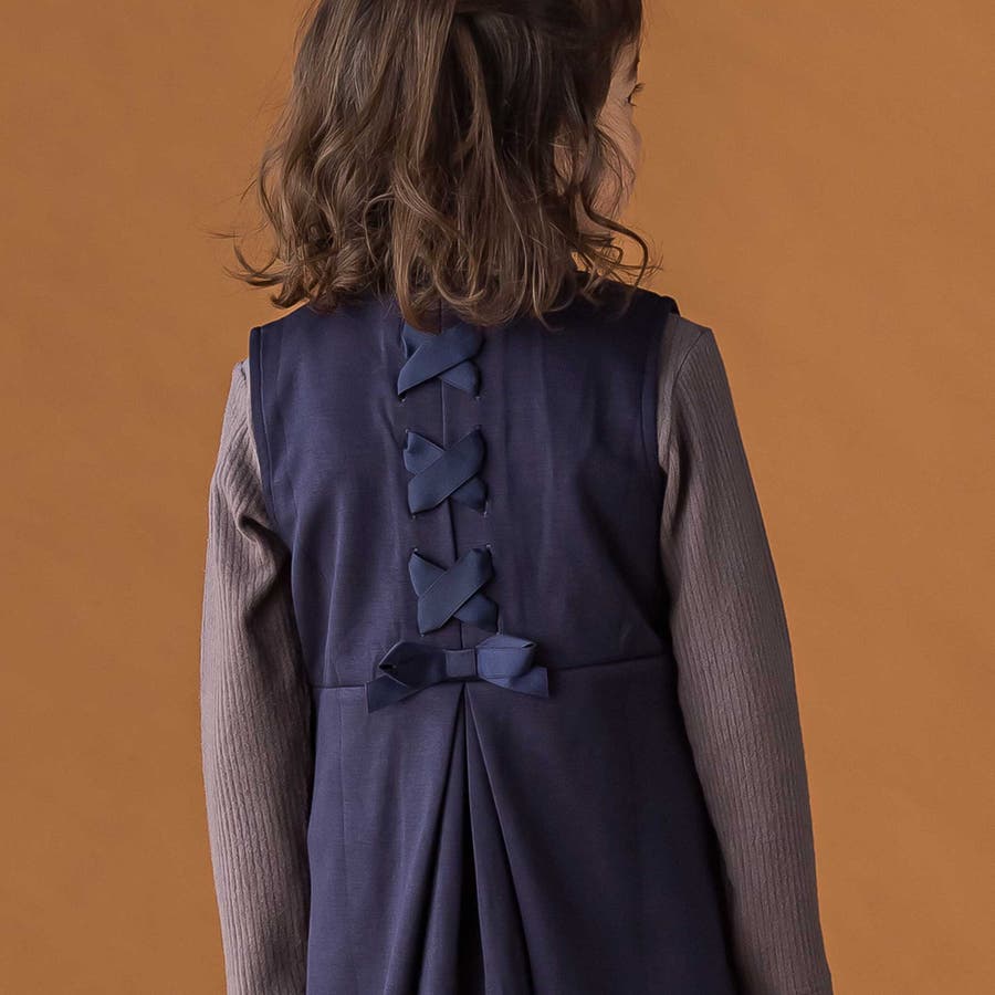 後ろ姿まで可愛い、編み上げリボンのジャンパースカート。