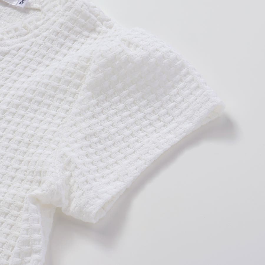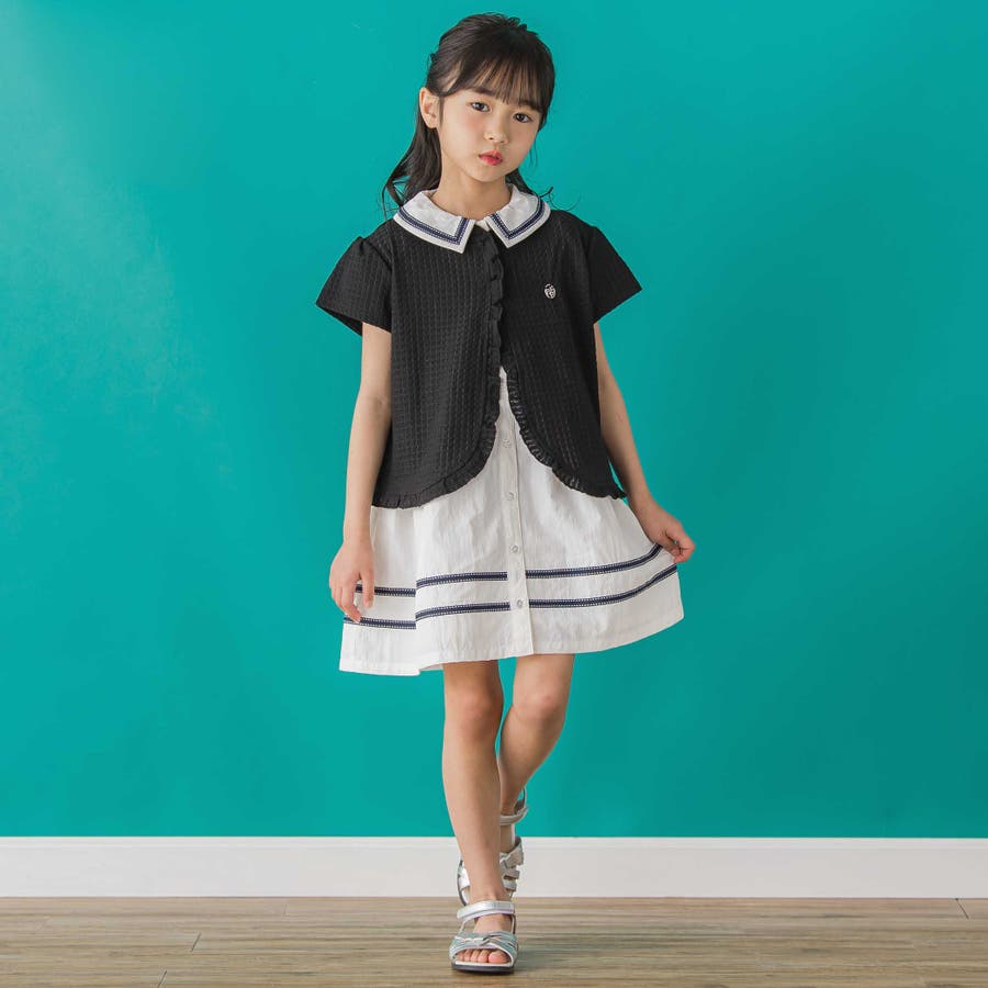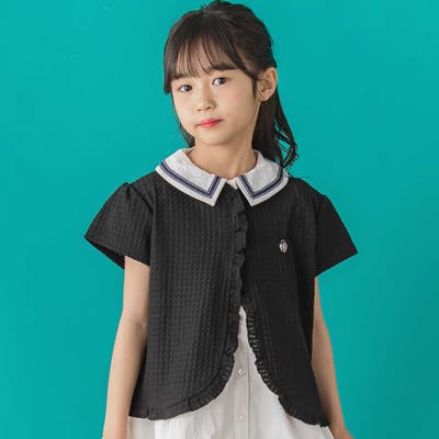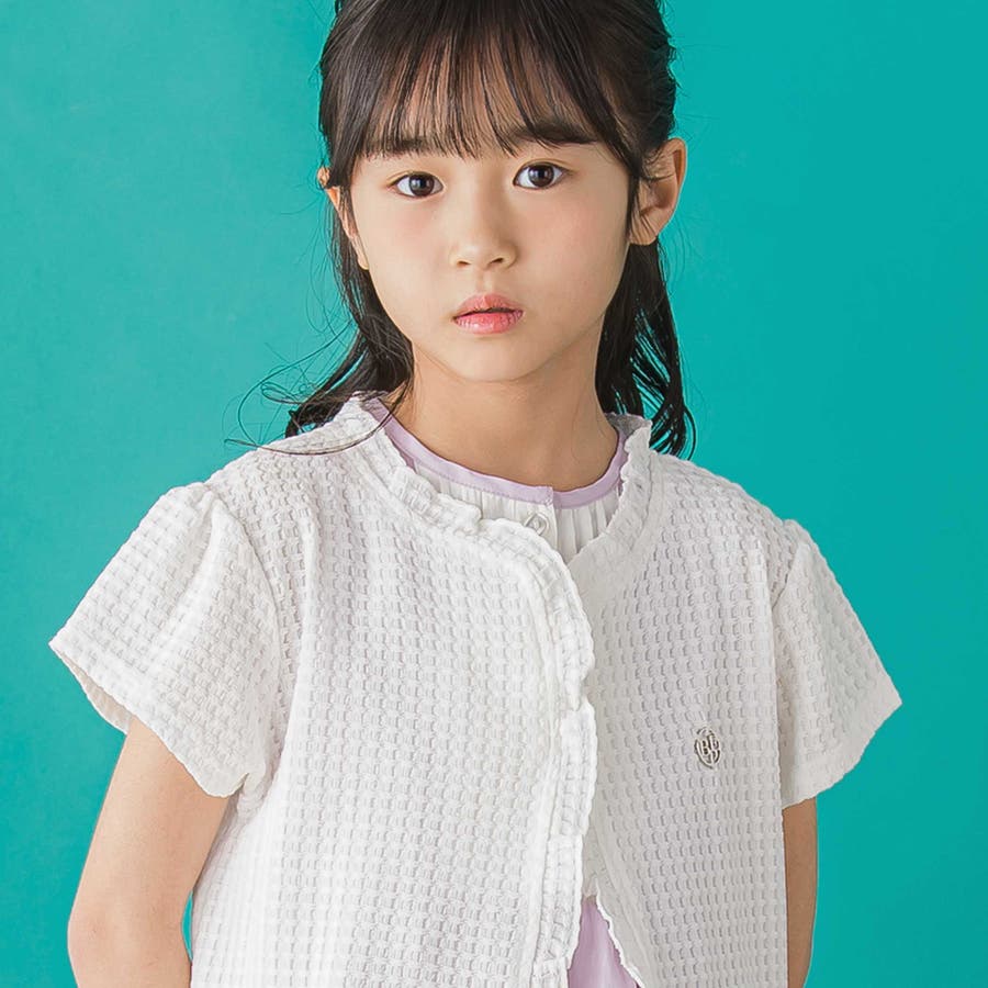 【店舗限定】格子編みカットソーフリル半袖ボレロ(95~150cm)