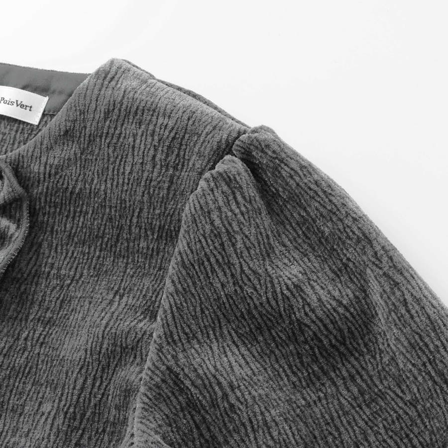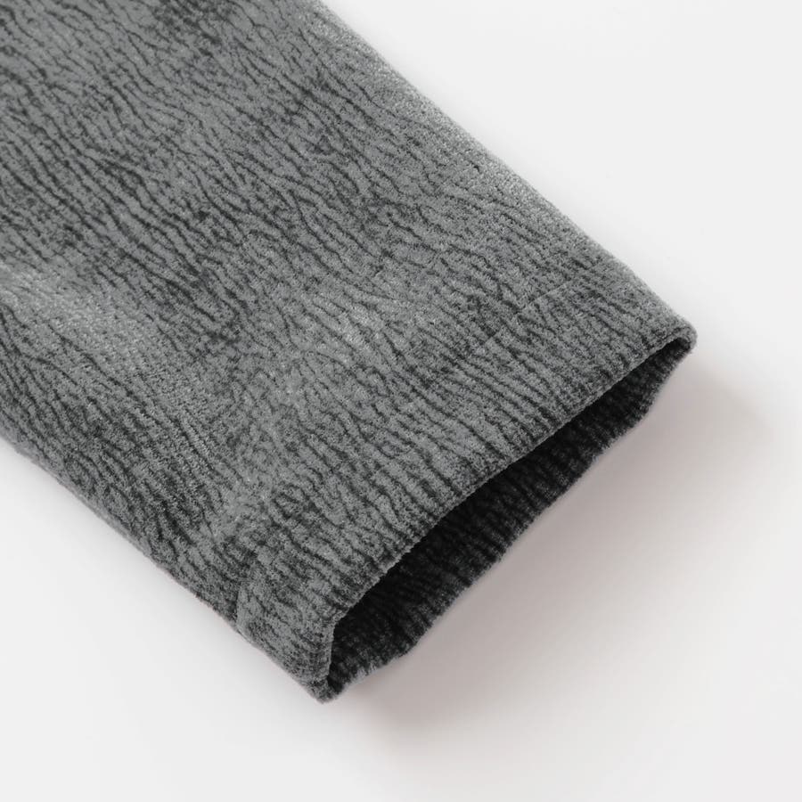 起毛感のあるジャガード生地に、ランダムな縦うね模様が浮かび上がる独特の表情。